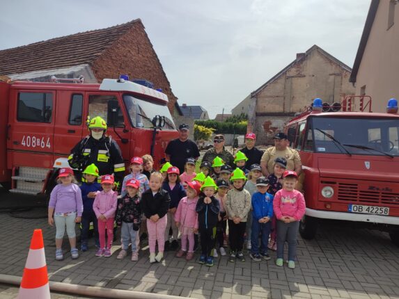 Pędzi wielki wóz strażacki i syreny alarmują By do ognia się nie zbliżać – wszystkich ludzi informują. Taki strażak to bohater – chociaż dym go szczypie w oczy Ryzykuje życie stale, z ogniem walkę musi stoczyć. Niejeden z przedszkolaków marzy o tym, by zostać strażakiem. Aby więc przekonać się, jak wygląda niezwykle trudna praca strażaka […]