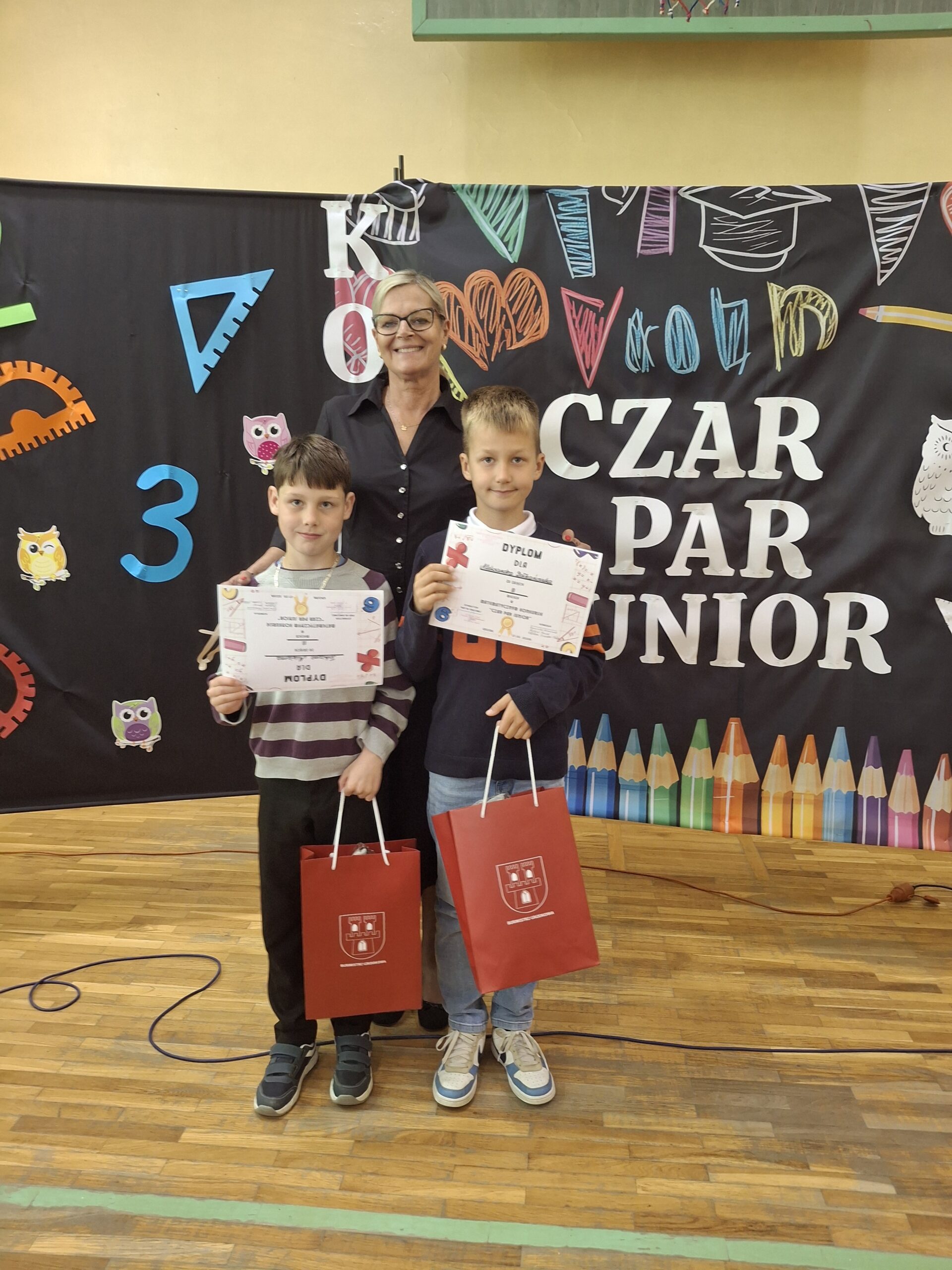 Dnia 27 maja 2025r. uczniowie klasy III – Aleksander Dołhańczuk i Tobiasz Misiarz reprezentowali naszą szkołę w Gminnym Konkursie Matematycznym „Czar Par Junior” w Gnojnej. W matematycznych potyczkach uczniowie zajęli III miejsce.