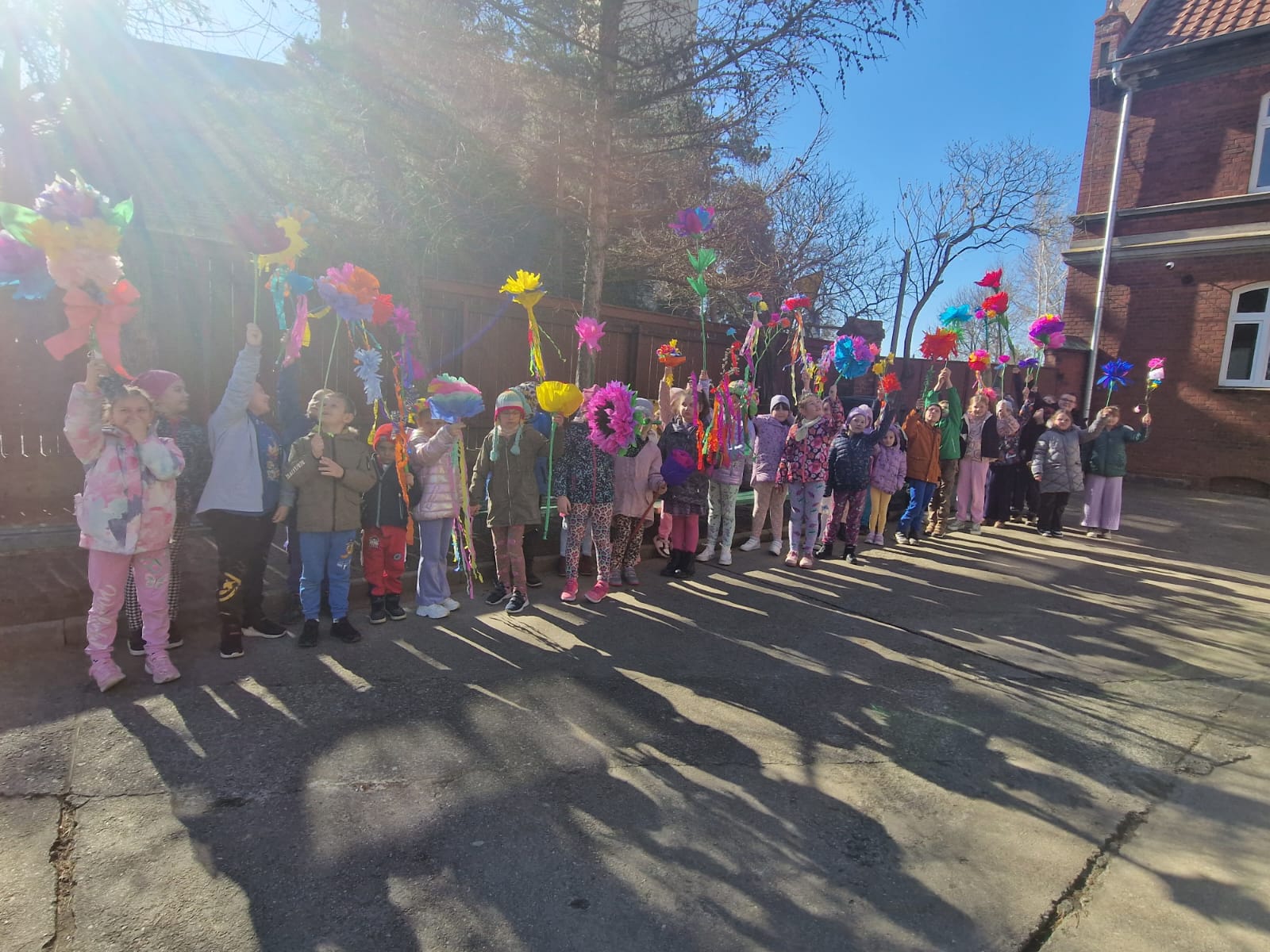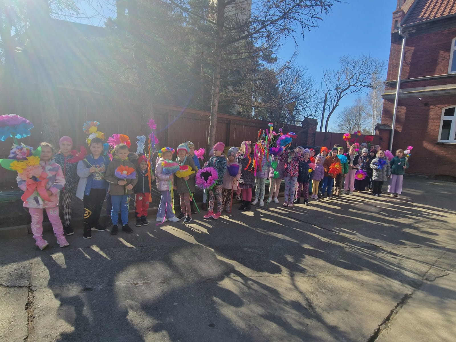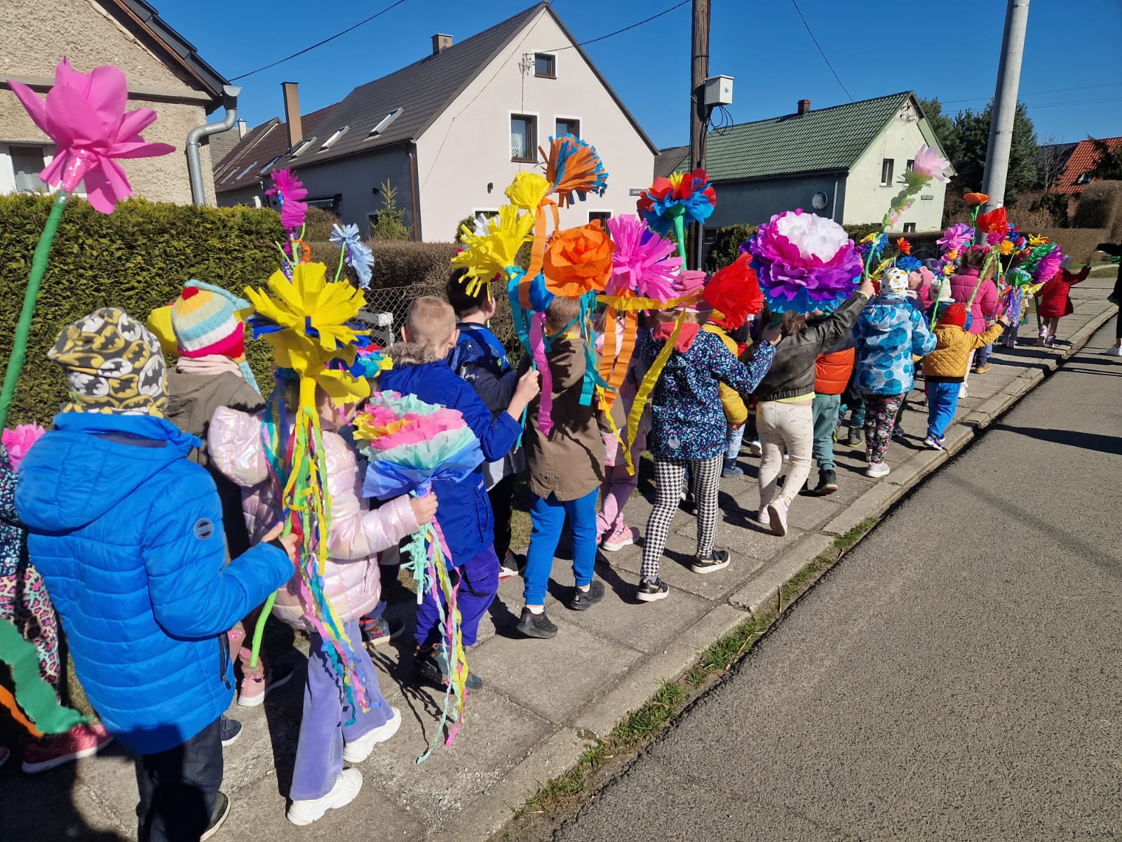 Zgodnie z tradycją 20 marca 2025r. odbyło się uroczyste powitanie Pani Wiosny. Ten dzień rozpoczęliśmy od występów wokalnych oraz wierszy przygotowanych przez uczniów klas 1-3 oraz grupy przedszkolne. Następnie wraz z Marzanną, kolorowymi kwiatami i gaikami wyszliśmy powitać oficjalnie Panią Wiosnę. Dzieci głośnym śpiewem i radosnymi okrzykami „ Żegnaj Zimo, Witaj Wiosno!” przegnały zimę i powitały wiosnę.