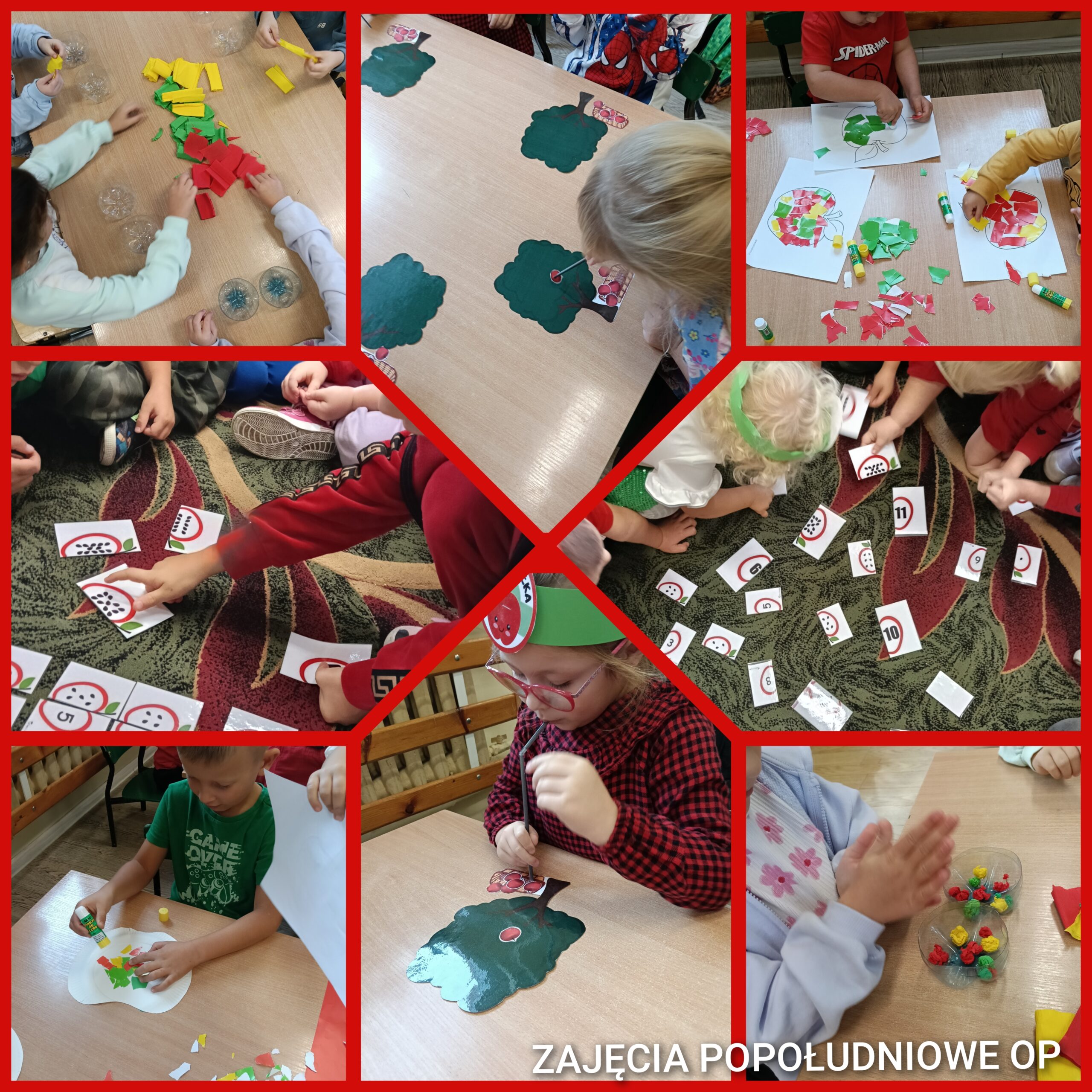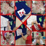 Nie zabrakło też twórczości – maluchy wyklejały kolorowe jabłuszka, a starszaki przygotowały wyjątkowe jabłka z butelek PET. Były również ćwiczenia logopedyczne z przenoszeniem jabłuszek, zabawy muzyczne przy piosenkach o jabłkach oraz tańce w kole.