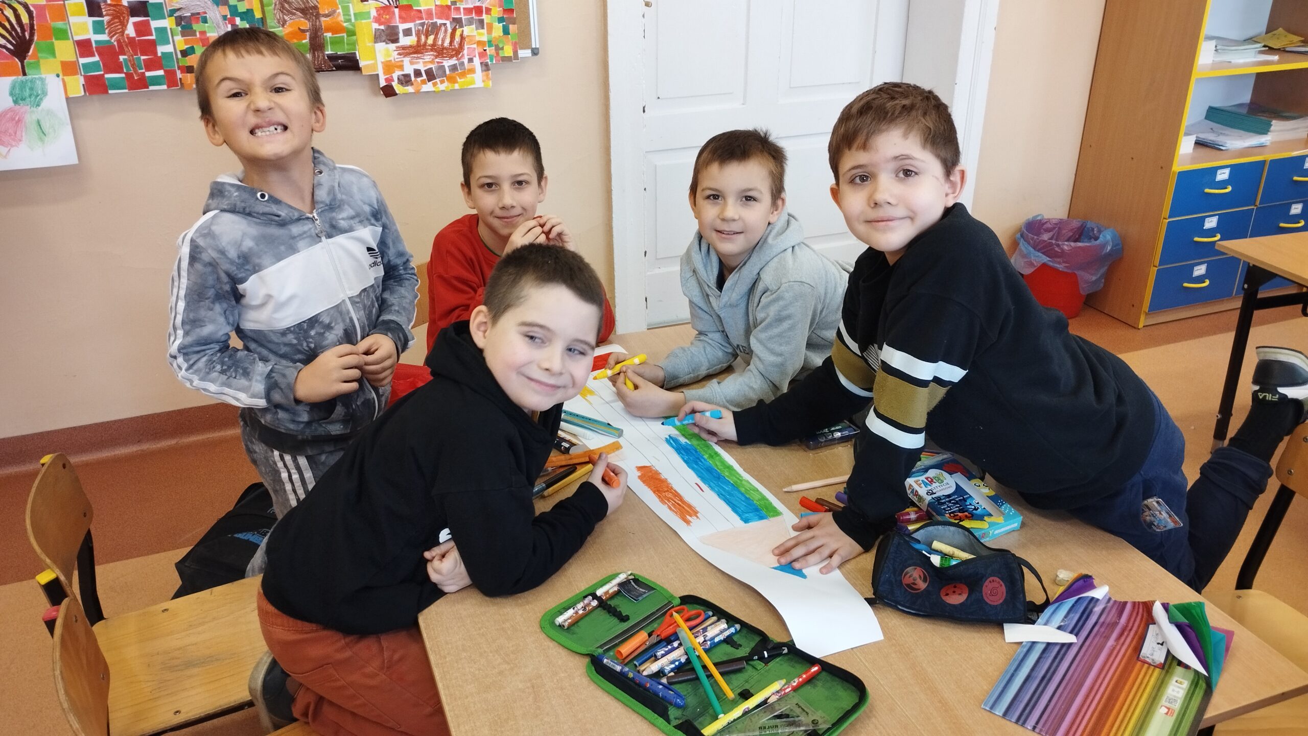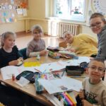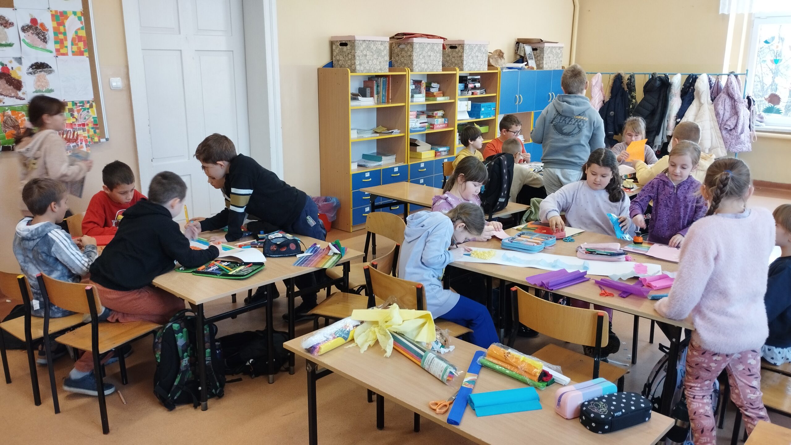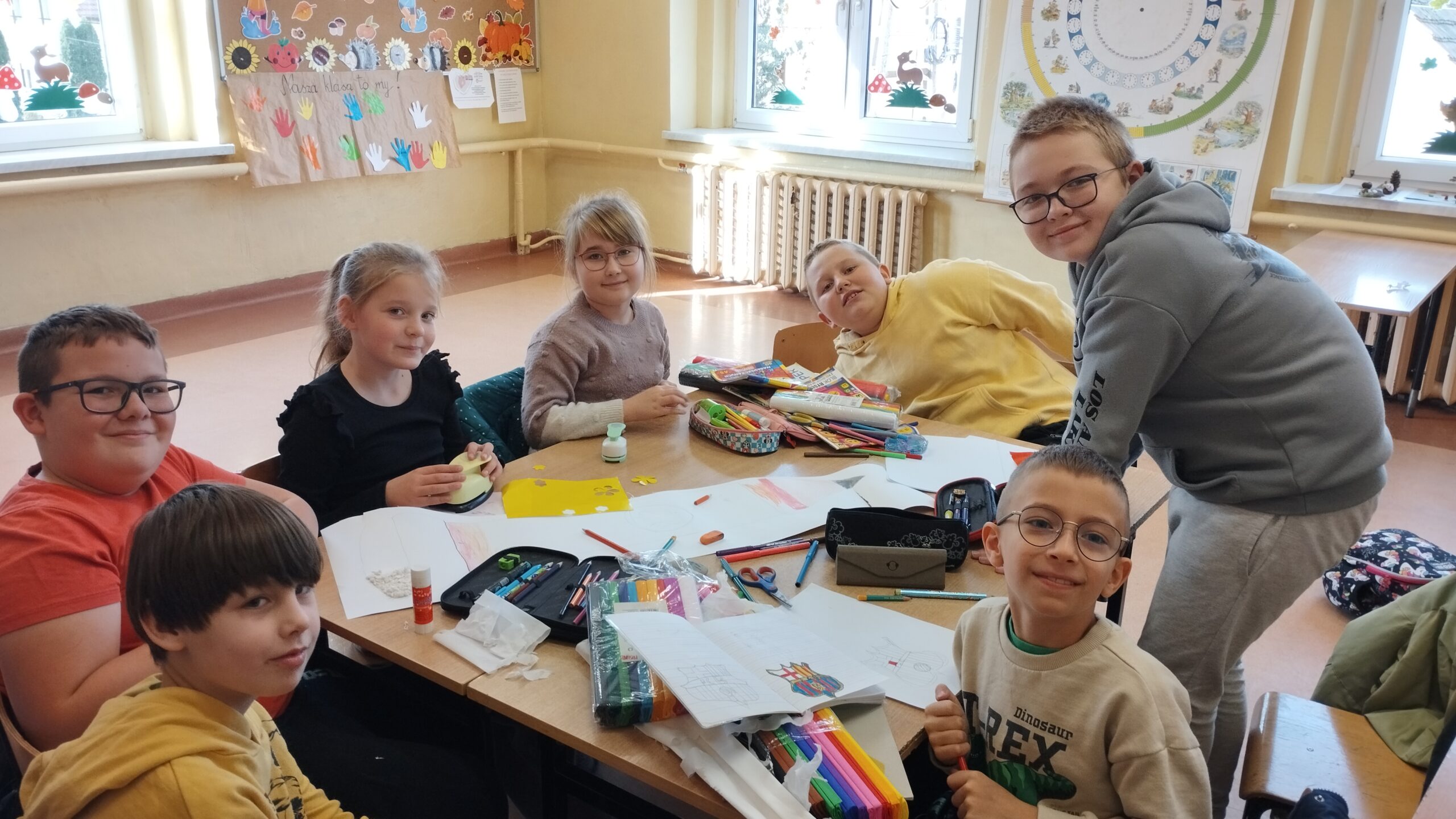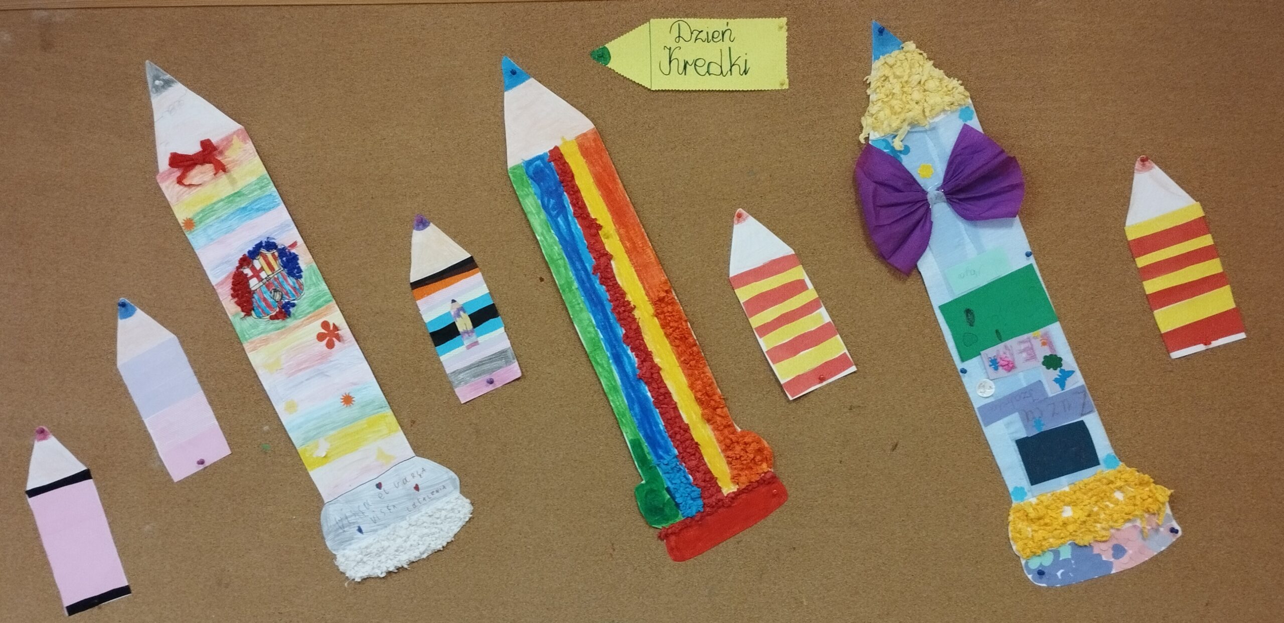 W piątek 22 listopada obchodziliśmy „Dzień Kredki”. Rysowanie to wielka frajda i ważny trening dla każdego dziecka. Do tego uczy twórczego myślenia. Za pomocą kredki dzieci mogą wyrazić to, co myślą, czują i o czym marzą. Z tej okazji podczas zajęć świetlicowych uczniowie klasy II i III wzięli udział w zajęciach plastyczno – technicznych. Ich zadaniem było wykonanie jak najpiękniejszej kredki, według własnego pomysłu. Uczniowie zostali podzieleni na trzy grupy. Doskonale wiemy, że praca zespołowa posiada wiele zalet: uczy współpracy, współdziałania, udzielania sobie pomocy, każdy uczestnik jest za coś odpowiedzialny. Praca zespołowa kultywuje komunikację oraz integruje zespół. Wszystkie grupy świetnie poradziły sobie z tym zadaniem, dzieci wykazały się kreatywnością, pomysłowością i co najważniejsze umiejętnością współdziałania w grupie. Taka metoda pracy przyniosła dzieciom wiele radości i satysfakcji, powstały przepiękne prace.