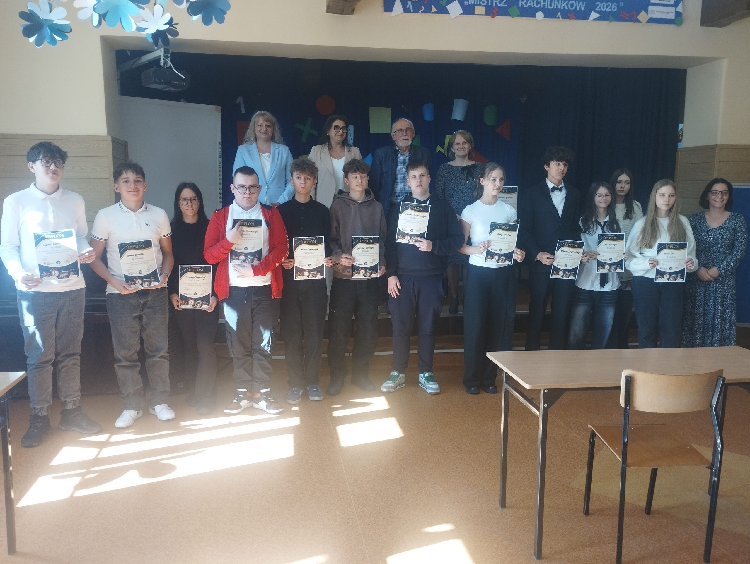W dniu 13 marca 2026r., odbył się Gminny Konkurs Matematyczny „Mistrz Rachunków 2026”, zorganizowany przez Publiczną Szkołę Podstawową nr1 w Grodkowie. Naszą szkołę reprezentowała Zuzanna Porębska oraz Artur Dudzik z klasy 8. Tematyka konkursu obejmowała dodawanie, odejmowanie, mnożenie, dzielenie i potęgowanie liczb całkowitych oraz ułamków zwykłych i dziesiętnych. Własności działań matematycznych, kolejność wykonywania działań.