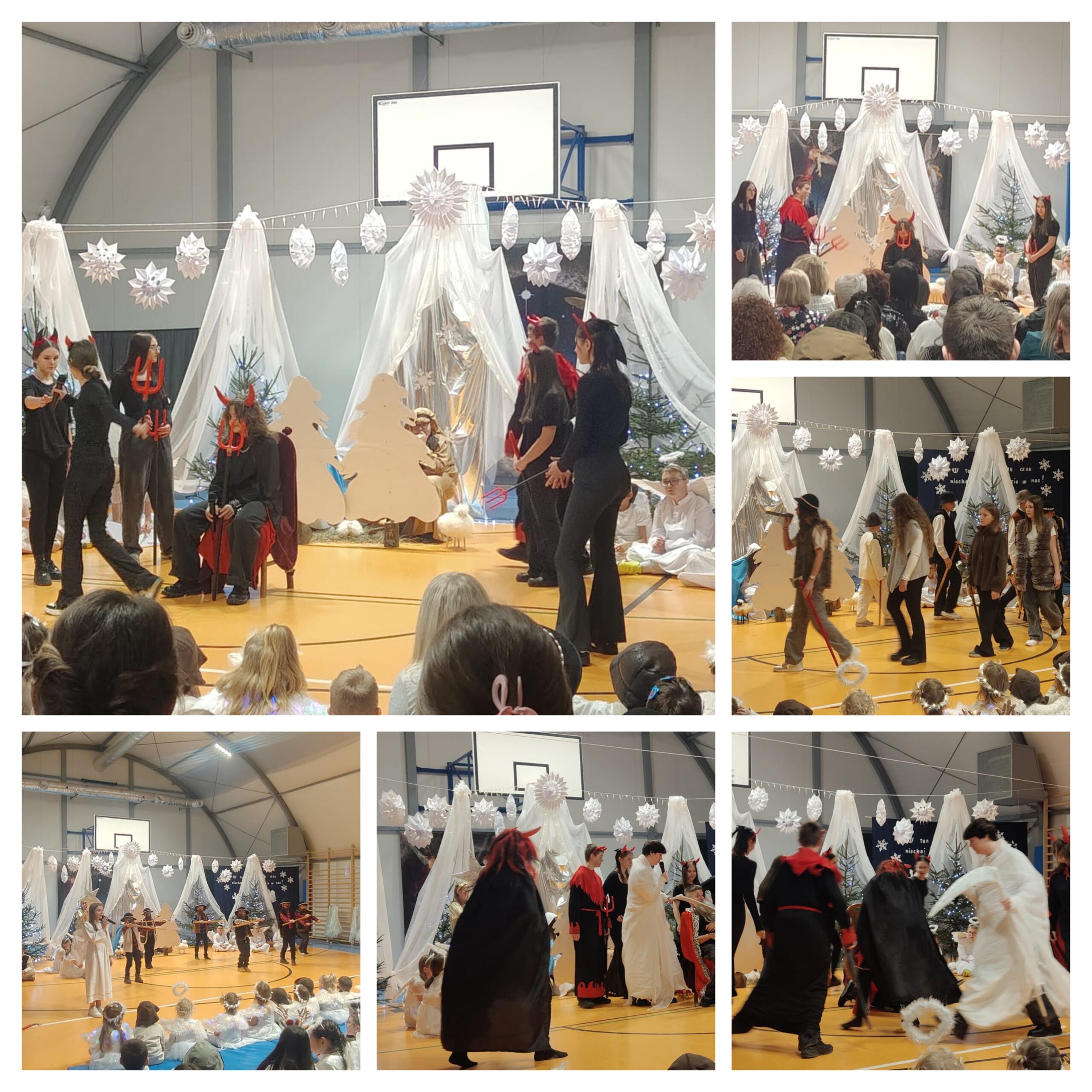 14 grudnia w naszej szkole odbyły się tradycyjne jasełka bożonarodzeniowe, przygotowane przez uczniów dla zaproszonych gości. Wydarzenie wprowadziło wszystkich w świąteczny nastrój i było okazją do wspólnego przeżywania wyjątkowego czasu oczekiwania na Boże Narodzenie.