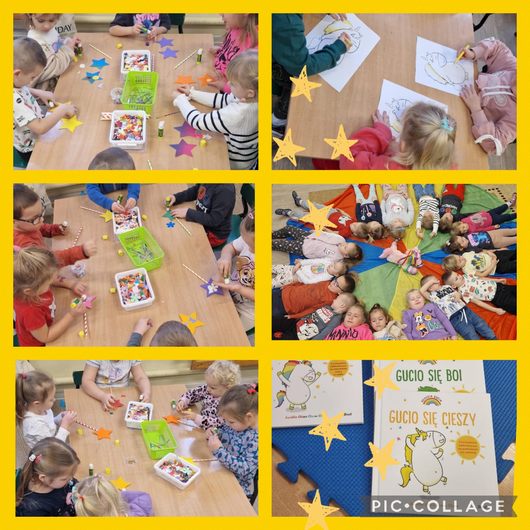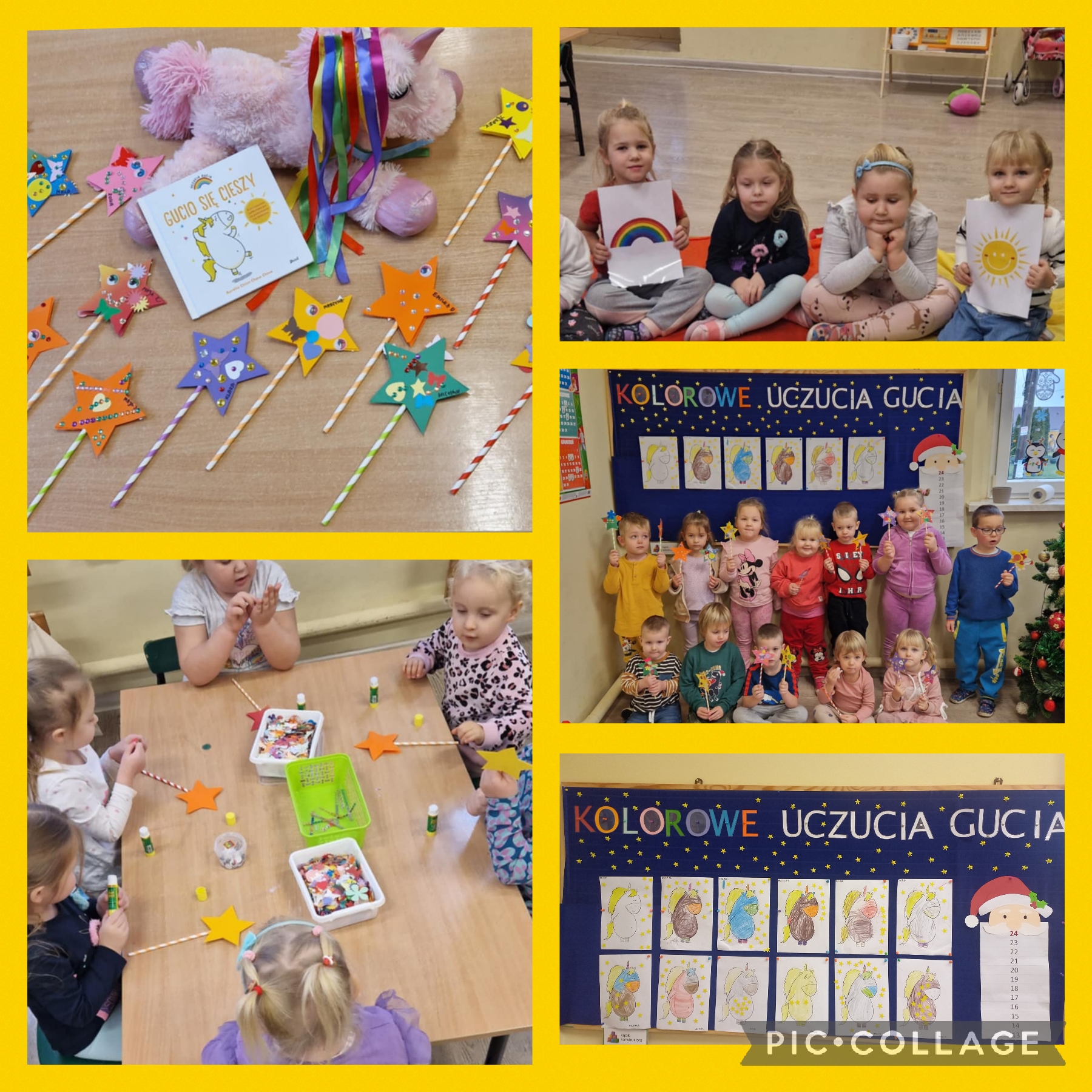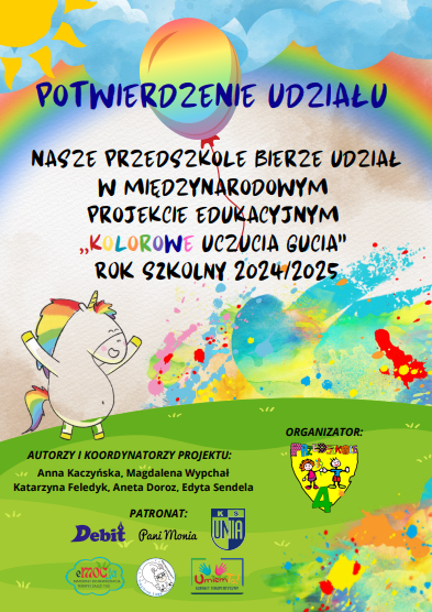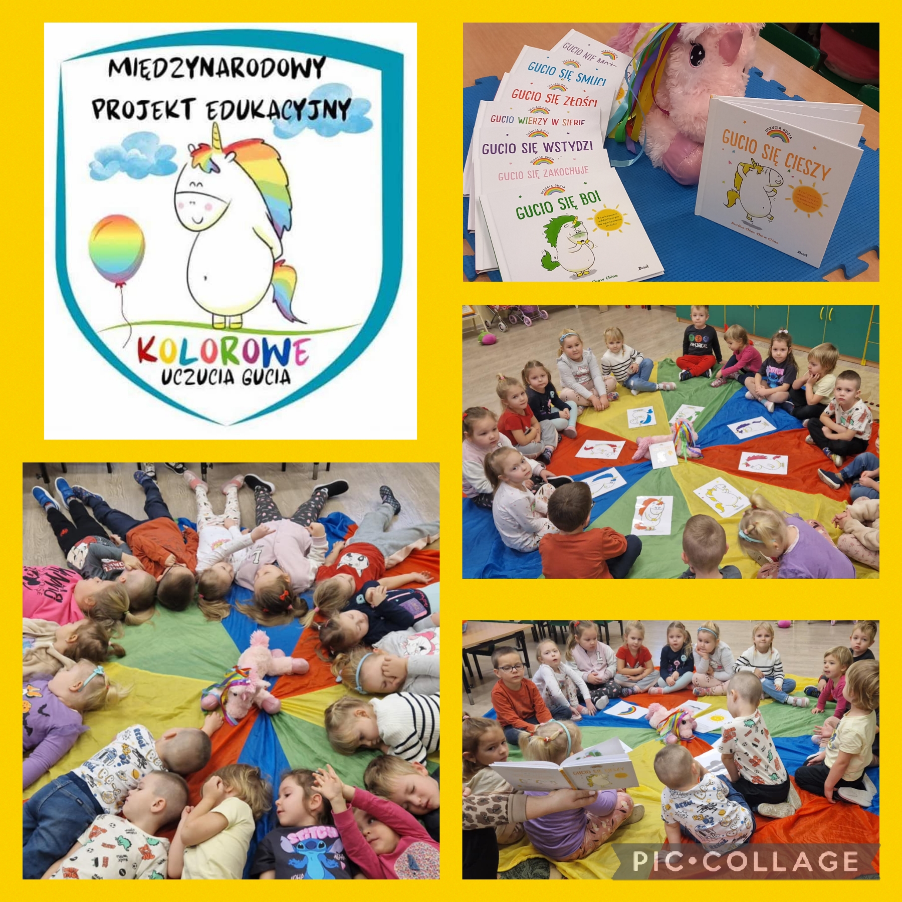 Grupa 3,4,5- latków bierze udział w Międzynarodowym Projekcie Edukacyjnym „Kolorowe uczucia Gucia”. Jest to program, który pomoże naszym przedszkolakom lepiej zrozumieć swoje emocje oraz nauczyć się, jak wyrażać je w sposób bezpieczny i pełen szacunku dla innych. Celem projektu jest rozwijanie u dzieci umiejętności rozpoznawania