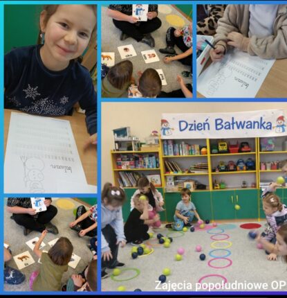 W minionym tygodniu podczas zajęć popołudniowych świętowaliśmy Dzień Bałwanka. Dzieci brały udział w zimowych zabawach oraz tworzyły bałwanki z butelek. Rozmawialiśmy także o ptakach – tych, które zimą zostają z nami. Dzieci dowiedziały się, jak im pomagać i własnoręcznie wykonały karmniki z rolek po papierze. Było radośnie, kreatywnie i bardzo zimowo!