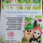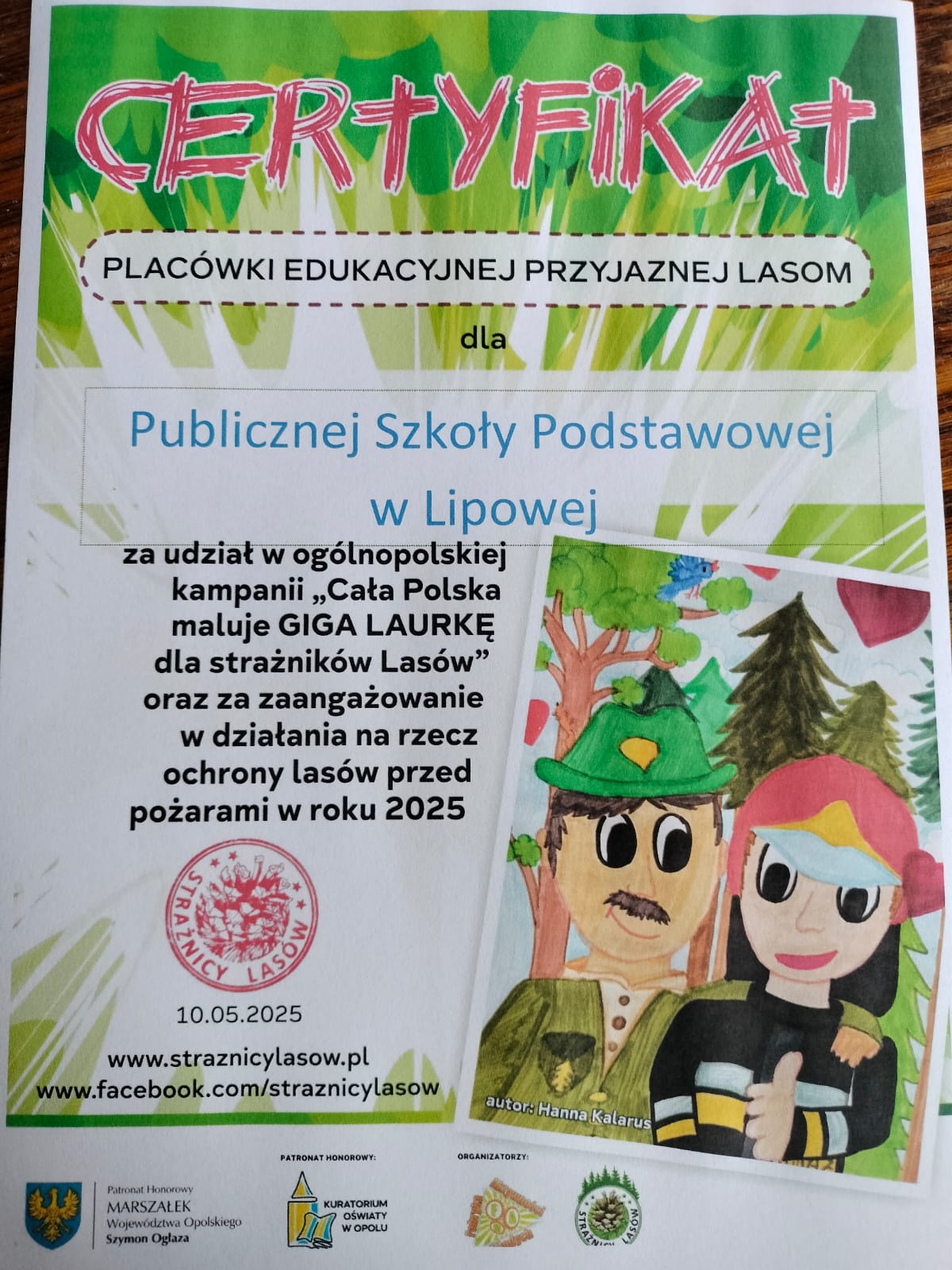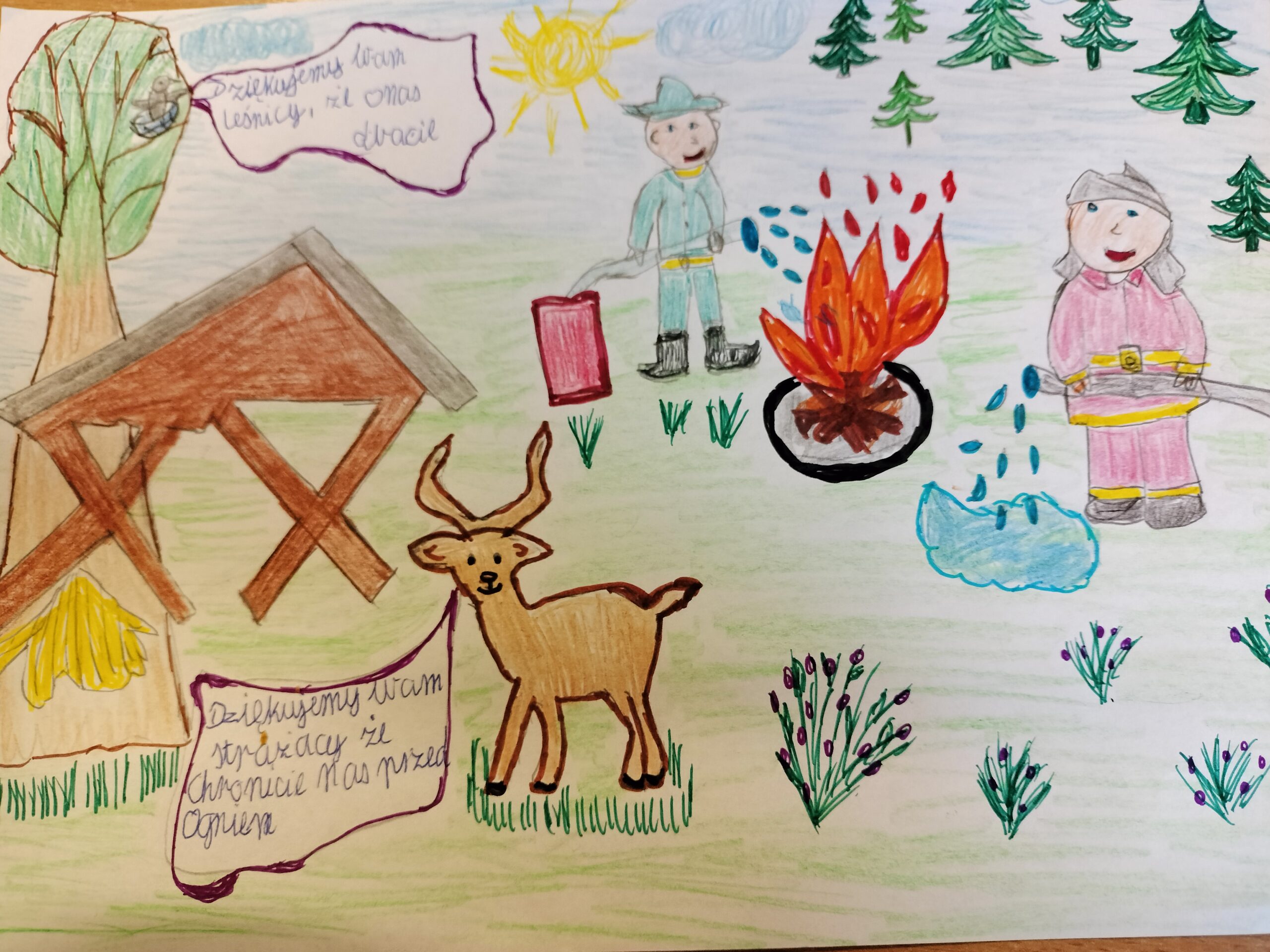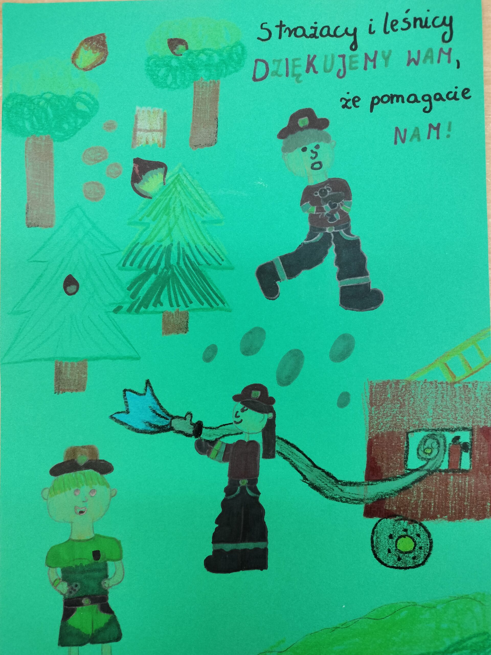 Wzięliśmy udział w ogólnopolskiej kampanii ,,Cała Polska maluje Giga Laurkę dla Strażników Lasów”. W akcji uczestniczyli uczniowie z klasy czwartej i piątej, którzy wykonali laurki dla strażaków i leśników. Zdjęcia laurek zostały przesłane do organizatorów kampanii i stały się częścią GIGA LAURKI. Podziękowania dla strażaków za ich ciężką pracę, dotrą do najbliższych jednostek Ochotniczej Straży Pożarnej. Koordynator projektu: Beata Fiałkowska.