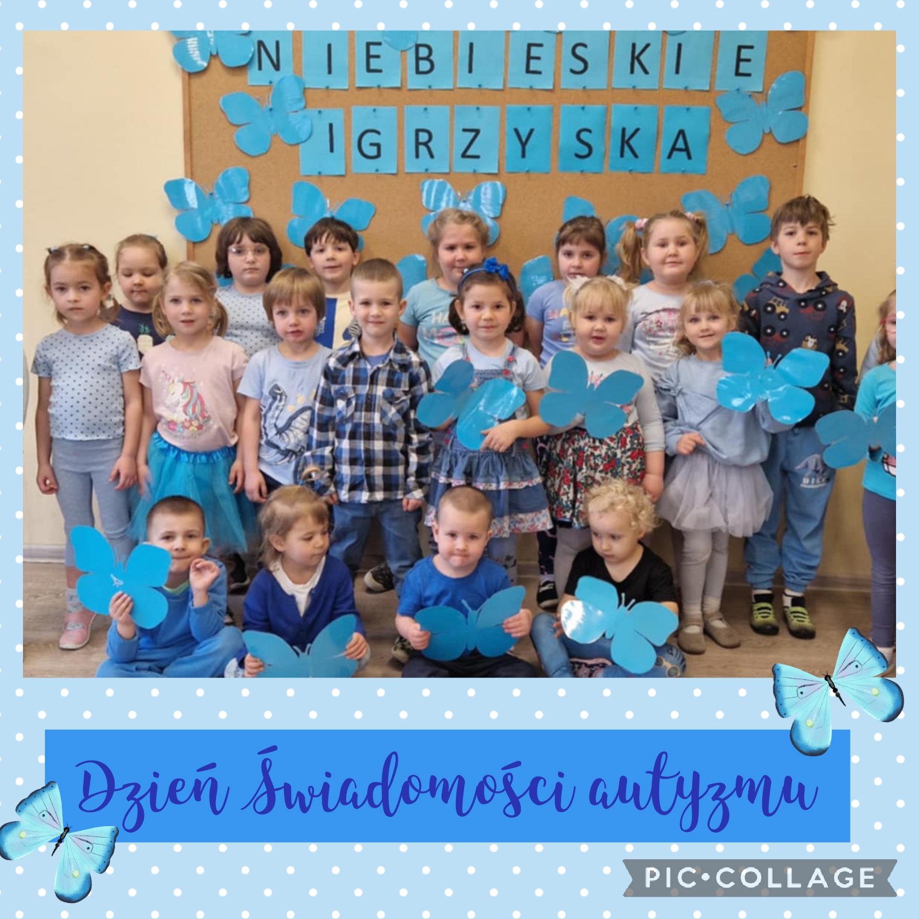 2 kwietnia po raz pierwszy obchodziliśmy w naszym przedszkolu „ Niebieskie Igrzyska”– wydarzenie niezwykle ważne. Dzień pełen zabaw i wspólnej integracji rozpoczął się od obejrzenia bajki edukacyjnej pt. „Jaś i niebieskie motyle”, która przedstawiała problemy życia codziennego chłopca dotkniętego autyzmem. Następnie na przedszkolaków czekały emocjonujące konkurencje oraz sensoryczne aktywności. Na koniec dzieci wykonały niebieskie motyle- symbol osób ze spektrum autyzmu, które oznaczają indywidualności, przeobrażanie się i różnorodności.