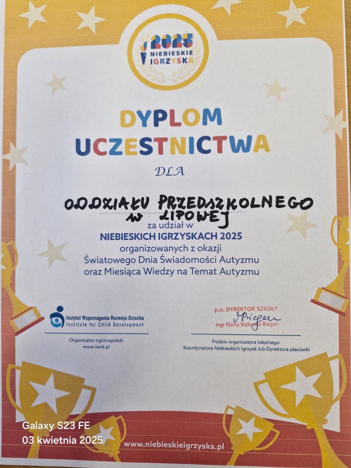 Kolor niebieski przepełniał nasze przedszkole, a radosny śmiech dzieci słyszała chyba cała miejscowość !