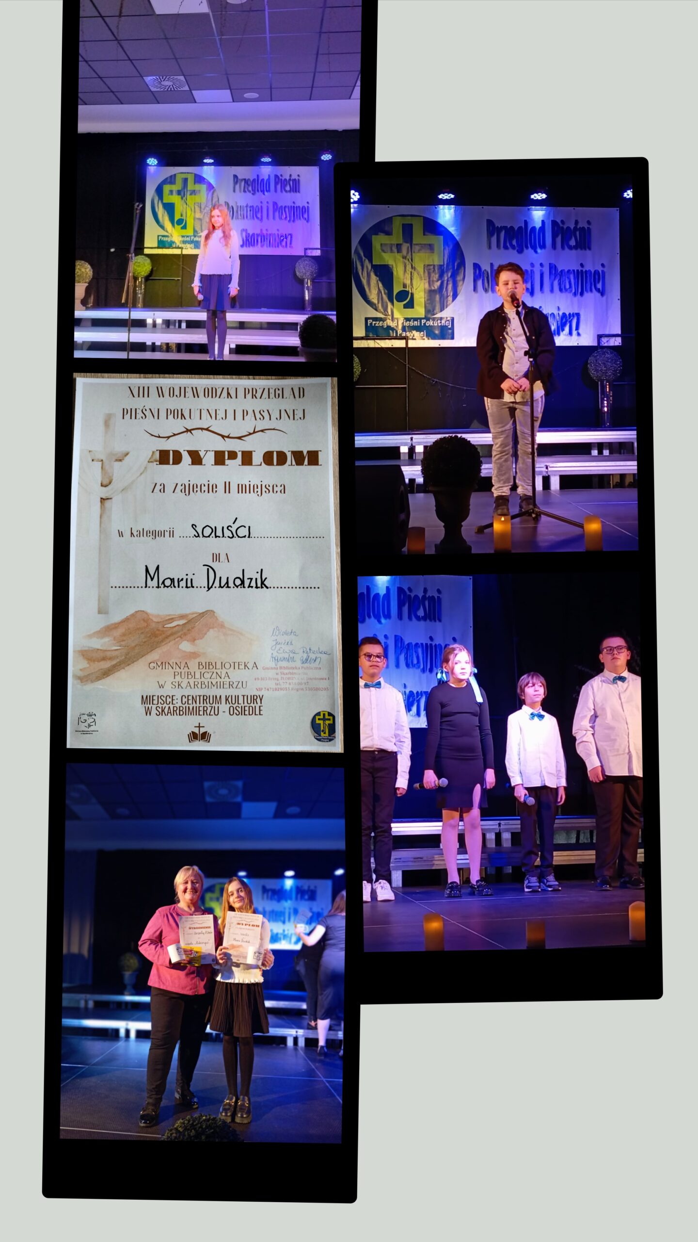 • Maria Dudzik z klasy VI zaśpiewała pieśń ,,A Ty mnie nie przestałeś kochać” i zajęła II miejsce w kategorii soliści.