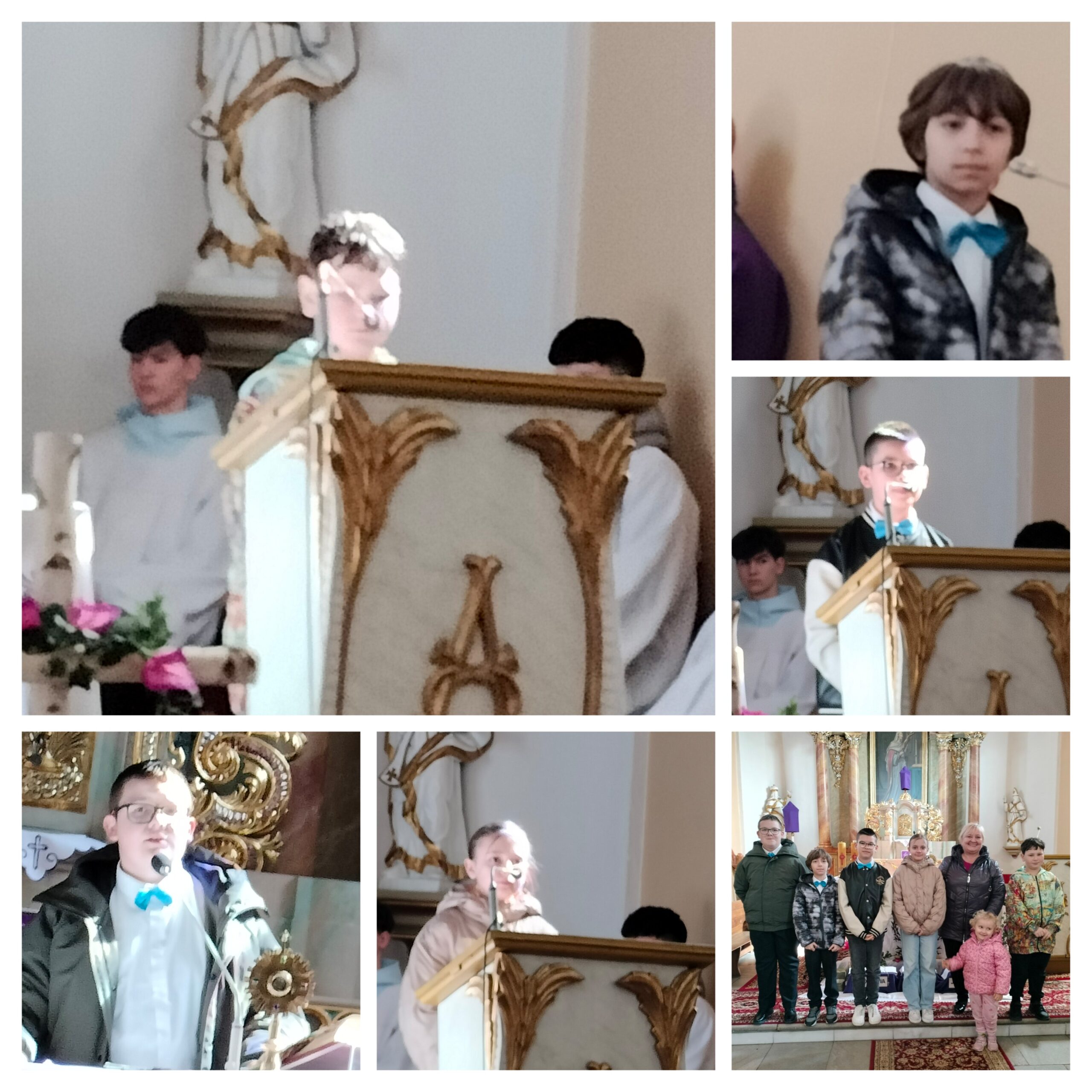 • Zespół ,,Rozśpiewani” z klasy IV wystąpił z utworem ,,Tam na krzyżu”,