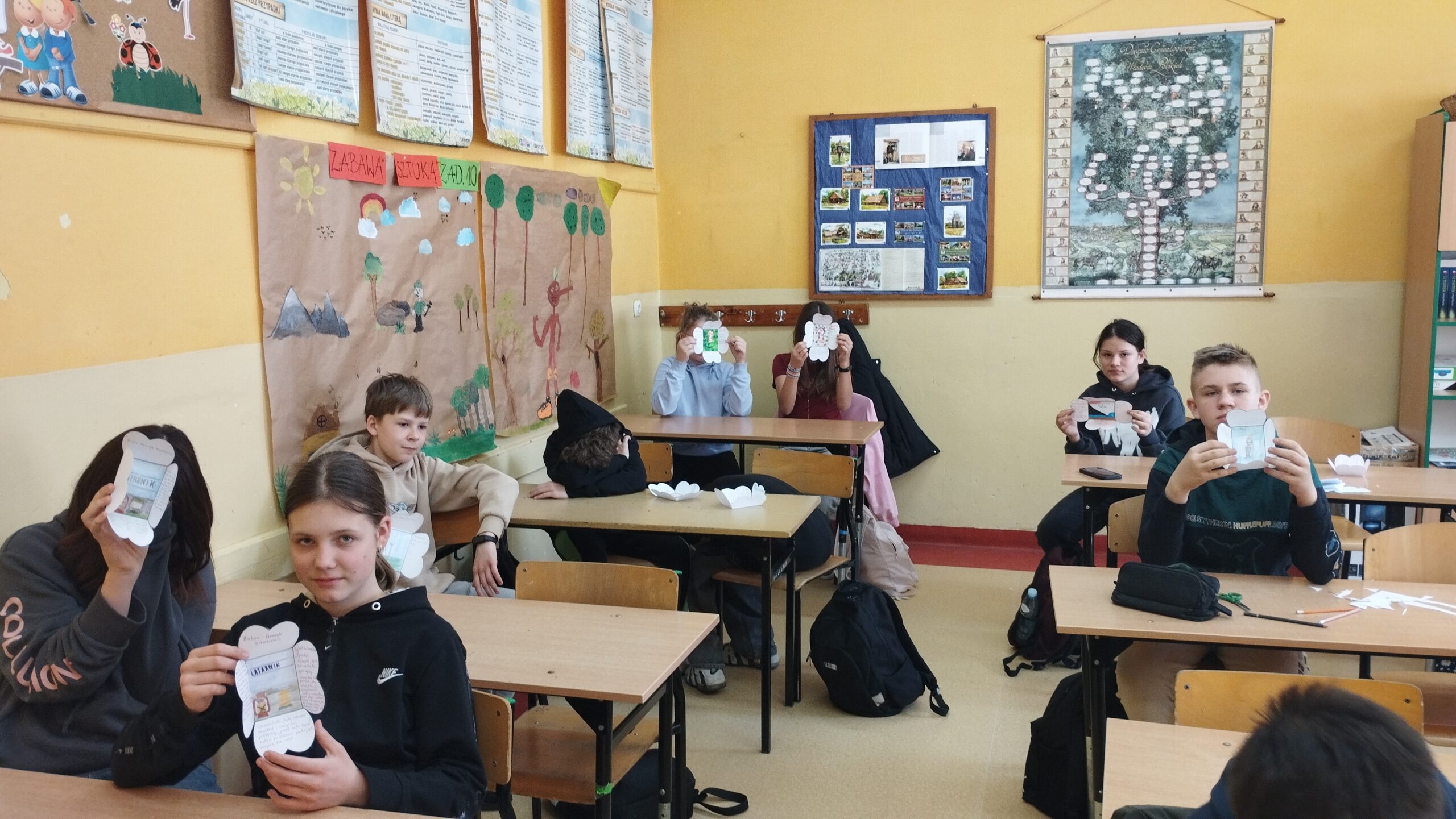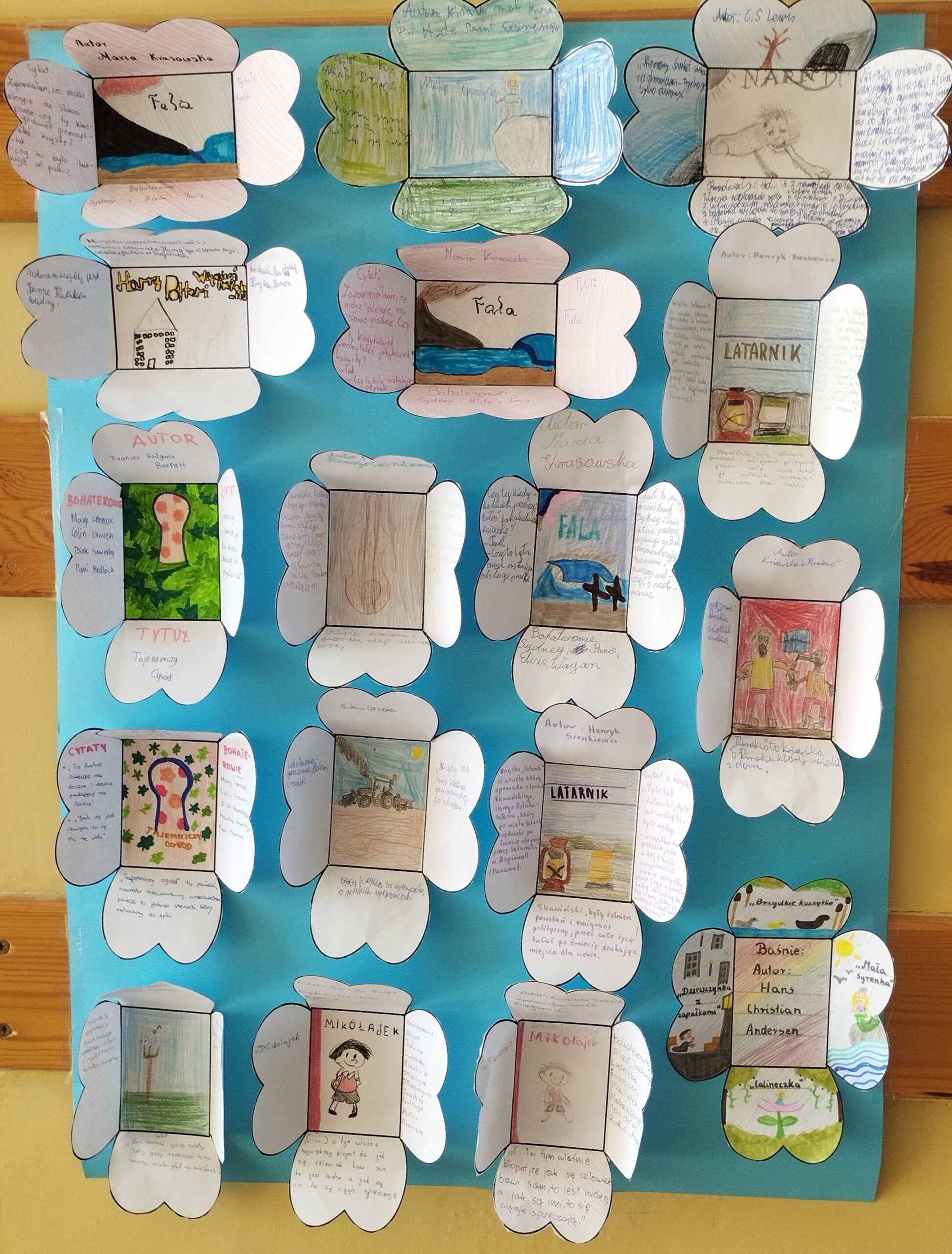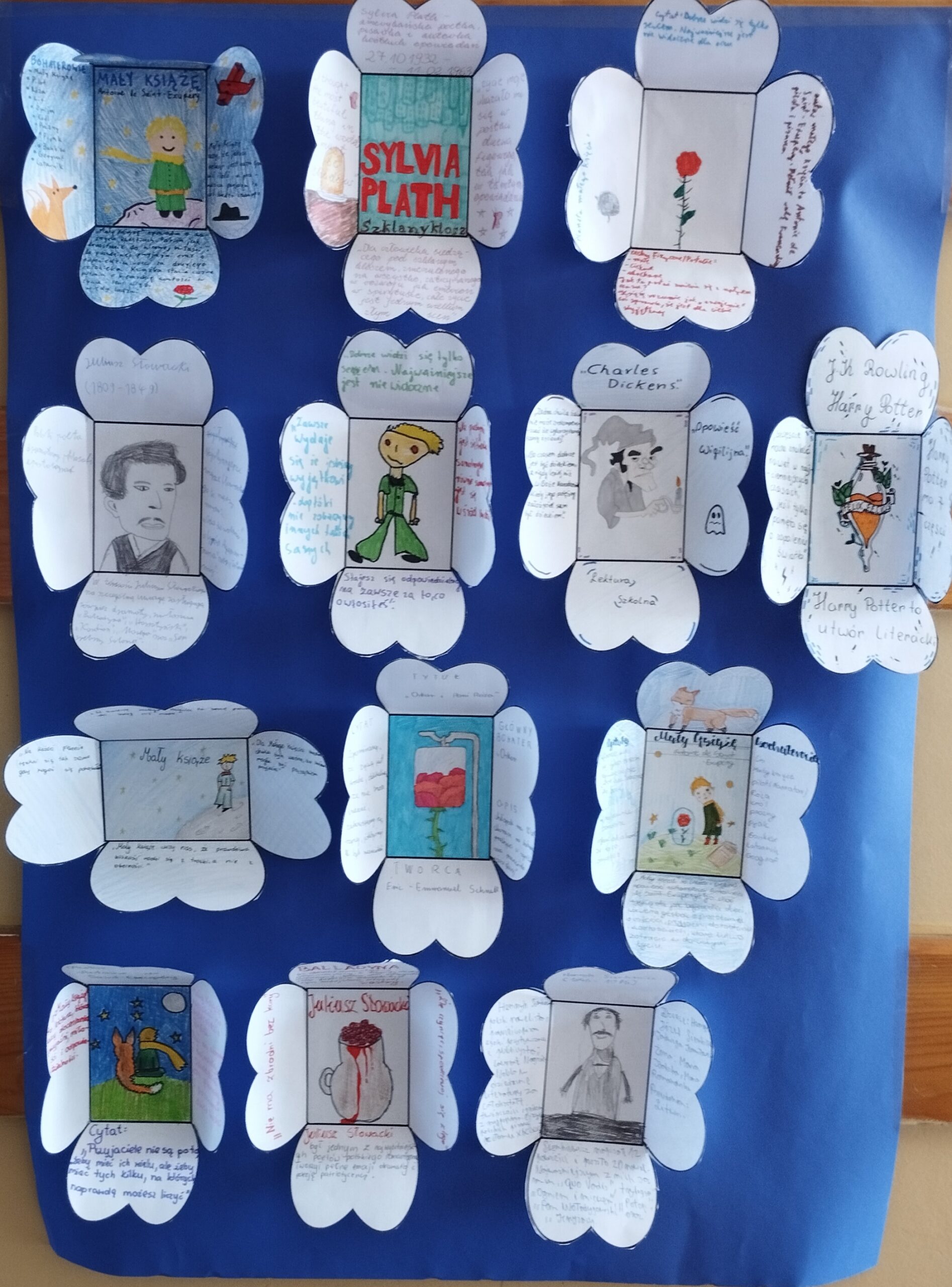 23 kwietnia obchodzimy „Światowy Dzień Książki i Praw Autorskich„ doroczne święto organizowane przez UNESCO w celu promocji czytelnictwa, edytorstwa i ochrony własności intelektualnej za pomocą praw autorskich. Aby uczcić ten dzień uczniowie klasy 8 wykonali przepiękny plakat, natomiast uczniowie klasy 5,6 i 7 stworzyli „lapbooki” według własnego pomysłu, dotyczące ulubionej książki, lektury bądź znanego autora. Powstały przepiękne prace, które zostały wyeksponowane na korytarzu szkolnym.