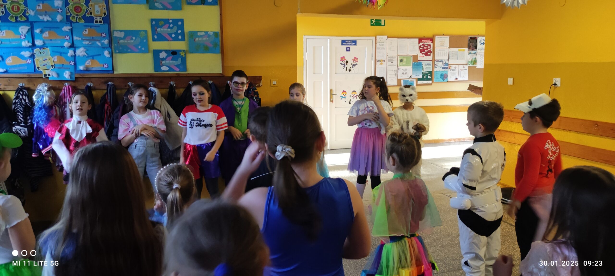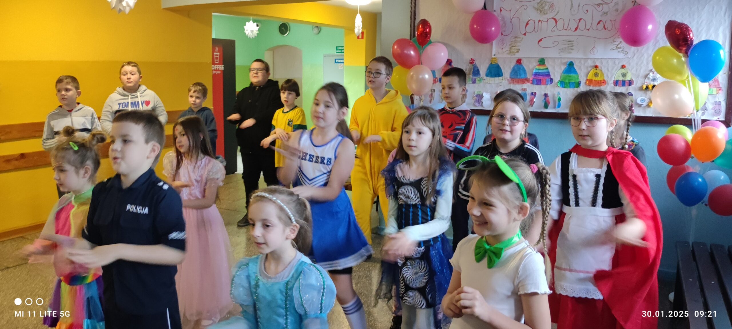 W czwartek 30.01.2025 roku, dzieci klas I-III bawiły się na balu karnawałowym. Wśród bawiących się barwnych postaci można było, zauważyć księżniczki, rycerzy, policjantów, żołnierzy i wiele innych ciekawych kreacji. Uczestnicy karnawałowej zabawy tańczyli przy wspaniałej muzyce oraz brali udział w różnych zabawach a w międzyczasie raczyli się słodkim poczęstunkiem.