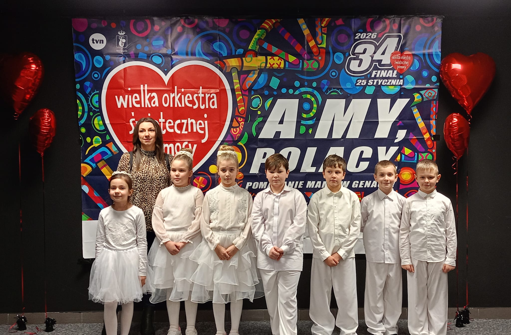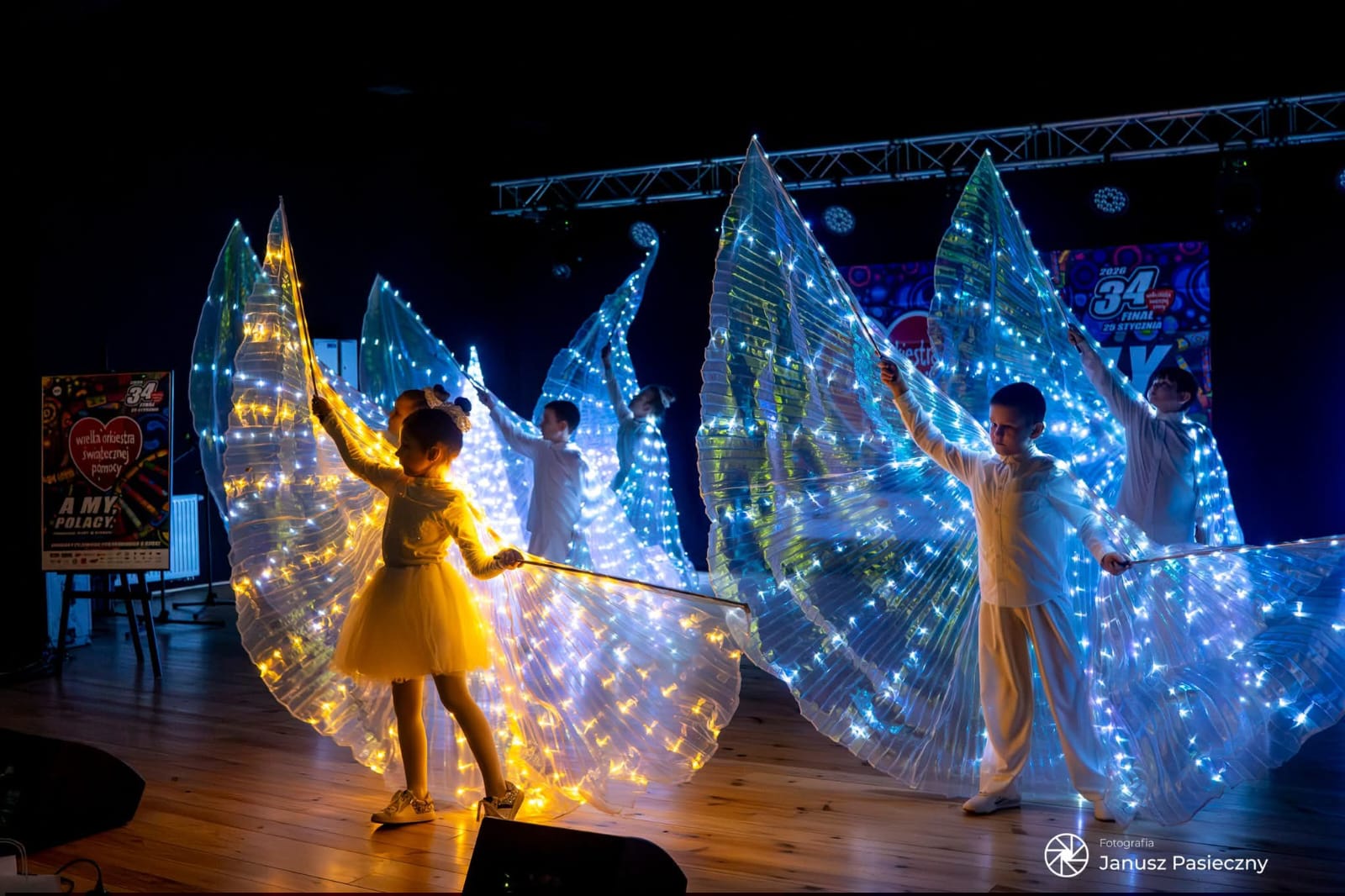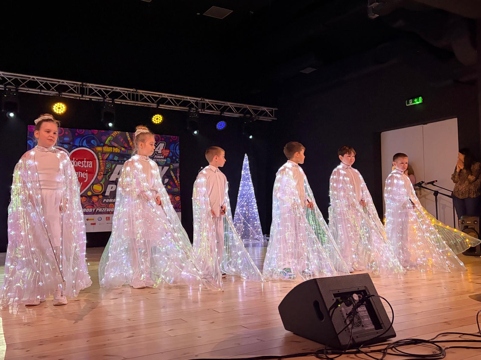 Dziękujemy za zaproszenie i możliwość zaprezentowania tańca w wykonaniu uczniów klasy II podczas 34 Finału Wielkiej Orkiestry Świątecznej Pomocy zorganizowanego w Ośrodku Kultury i Rekreacji w Grodkowie. Taniec ze skrzydłami to część tegorocznych Jasełek, które mieliśmy możliwość zaprezentować przed szerszą publicznością na scenie Domu Kultury w Grodkowie 11 stycznia 2026r.