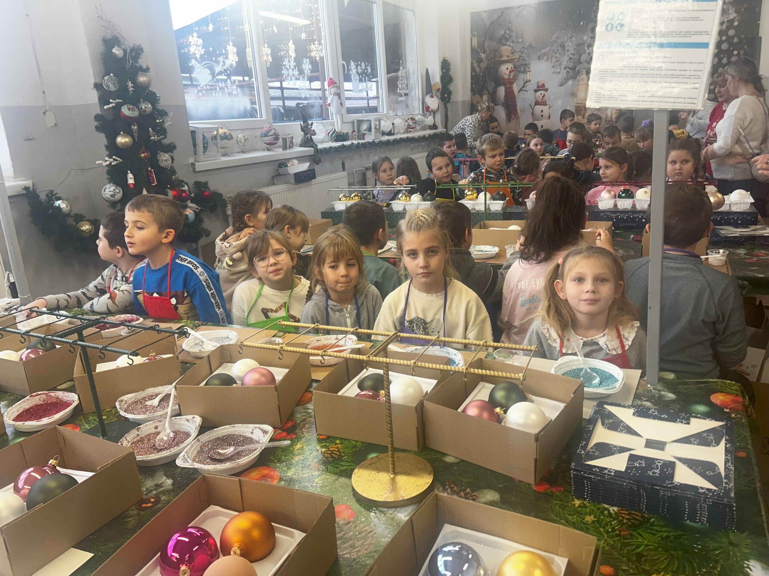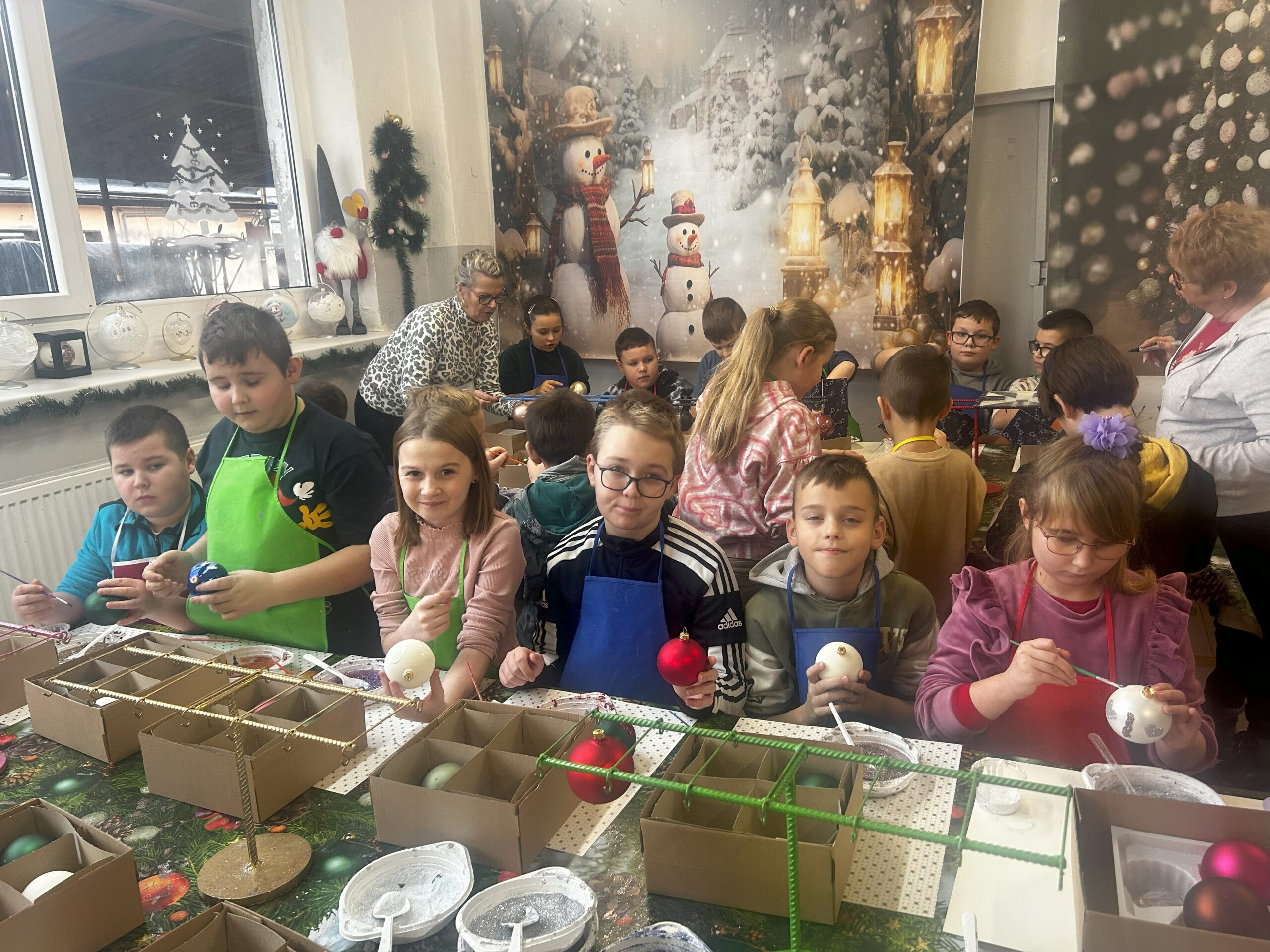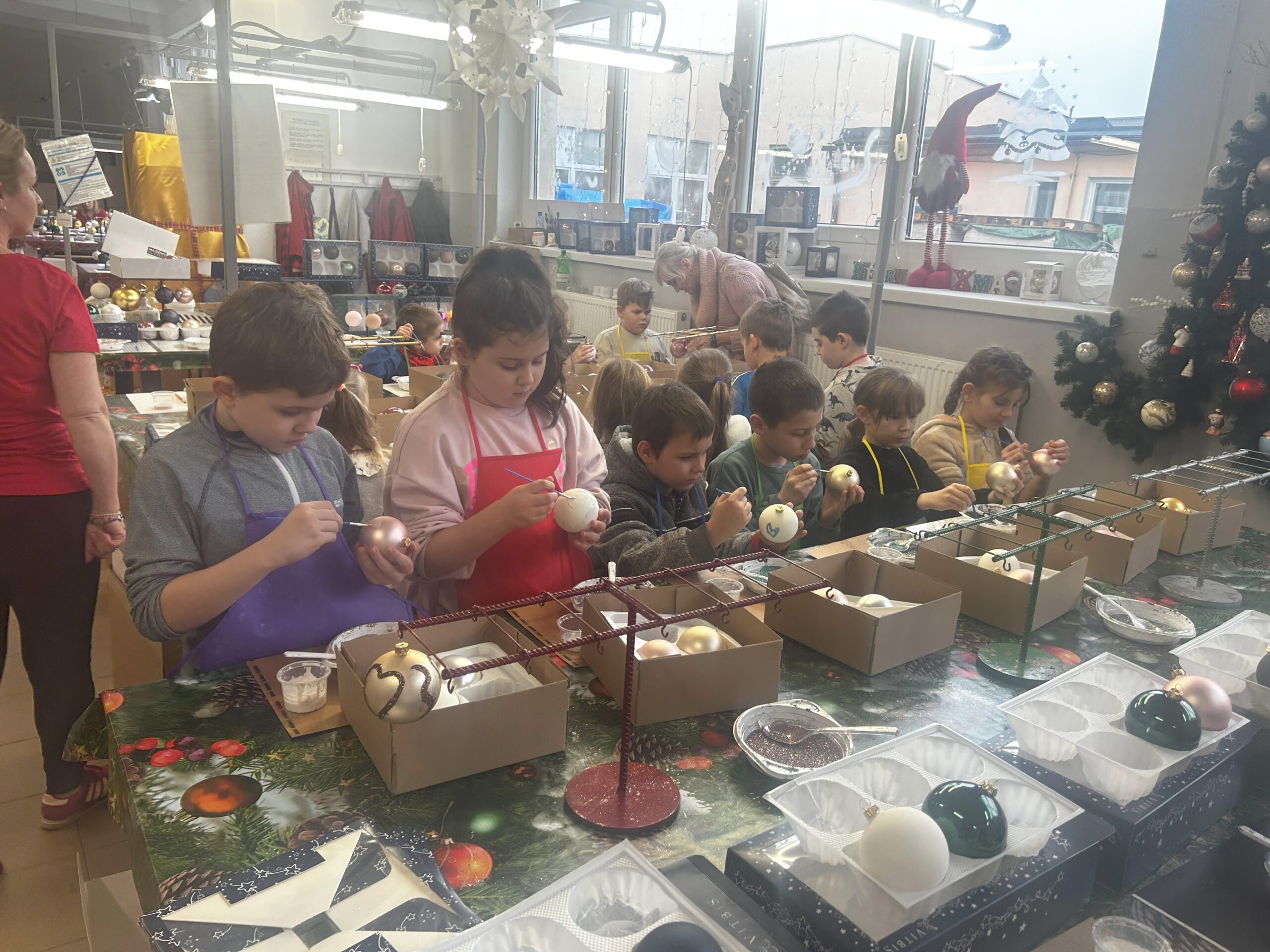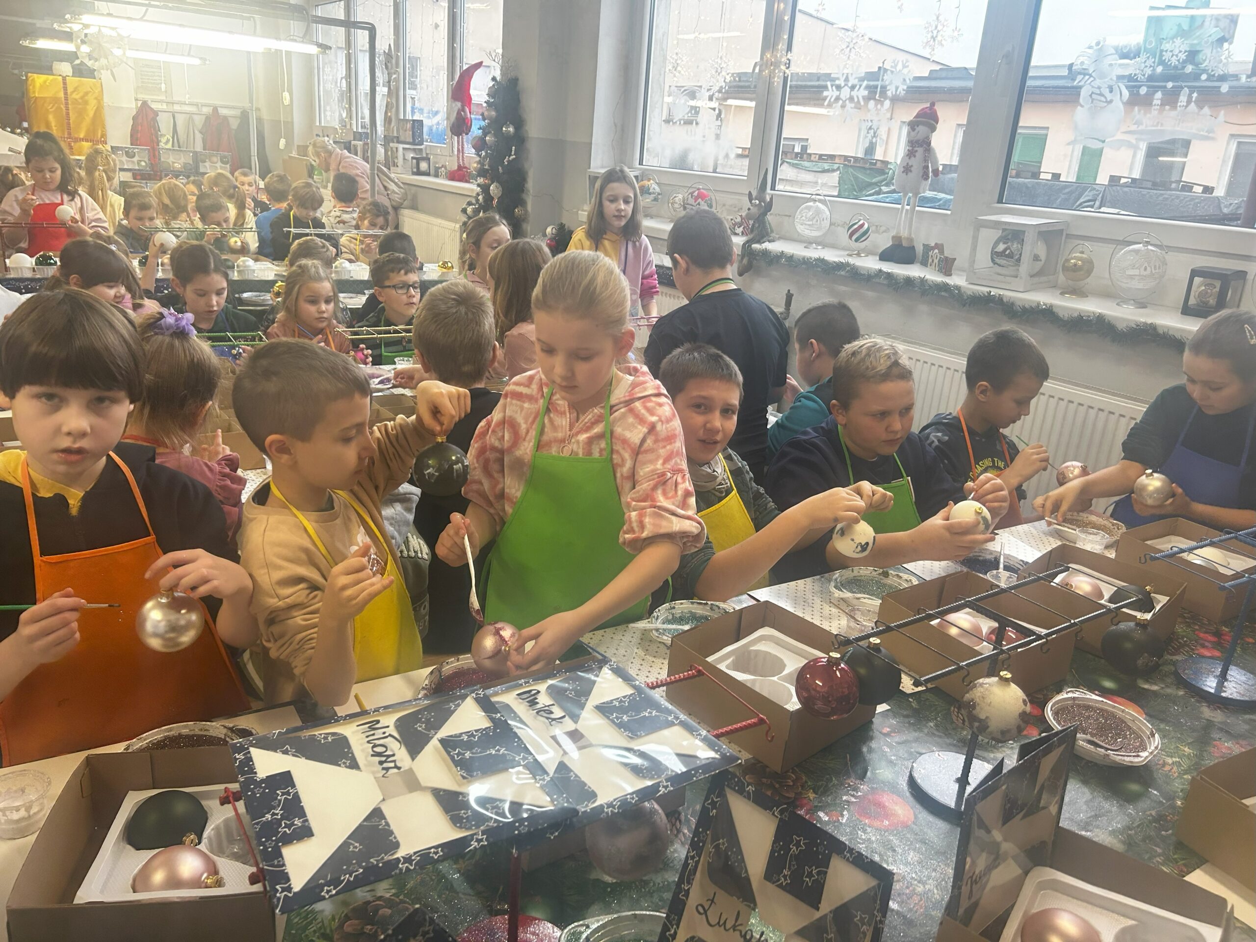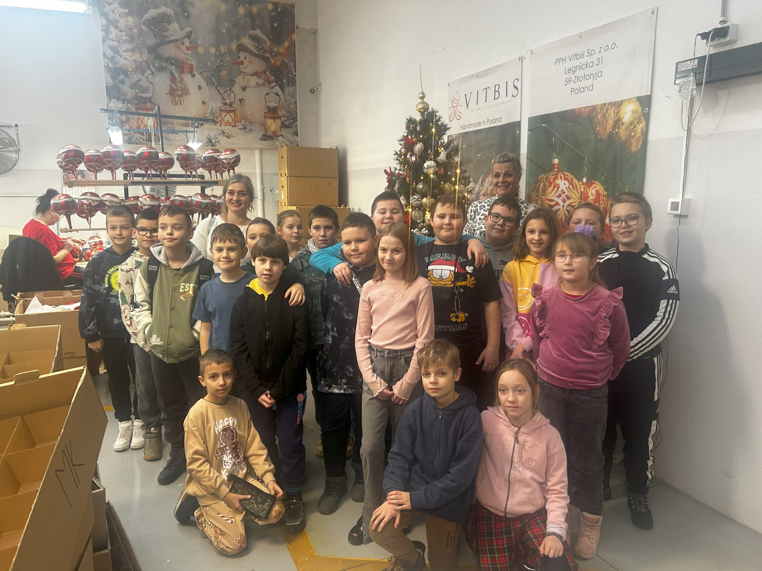 11 grudnia klasy I – IV wybrały się na wycieczkę do Złotoryi. Pierwszym punktem naszej wyprawy było zwiedzanie pięknego rynku i poznanie ciekawej historii tego urokliwego miasta. Następnie udaliśmy się do fabryki bombek Vitbis. Podczas zwiedzania zakładu mogliśmy zobaczyć każdy etap powstawania szklanych ozdób – jak z podgrzanej szklanej rurki wydmuchuje się okrągły kształt bombki, następnie proces srebrzenia oraz dekorowania przez pracowników, którzy każdą bombkę przyozdabiają pięknymi wzorami. Po wizycie w  fabryce wzięliśmy udział w warsztatach plastycznych. Uczniowie mieli okazję zamienić się w artystów, ozdabiali bombki według własnych pomysłów, a swoje prace zabrali na pamiątkę do domu. Na zakończenie każdy uczestnik otrzymał również bombkę ze swoim imieniem. Zadowoleni ze wspólnie spędzonego dnia udaliśmy się w drogę powrotną.