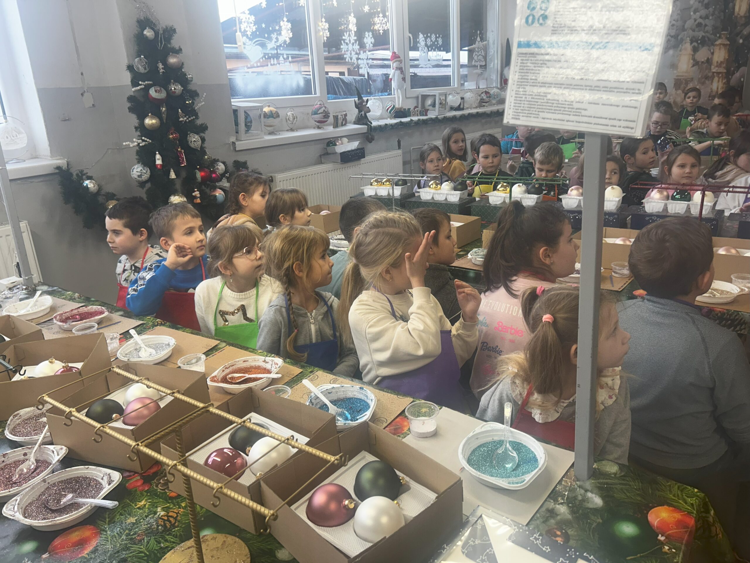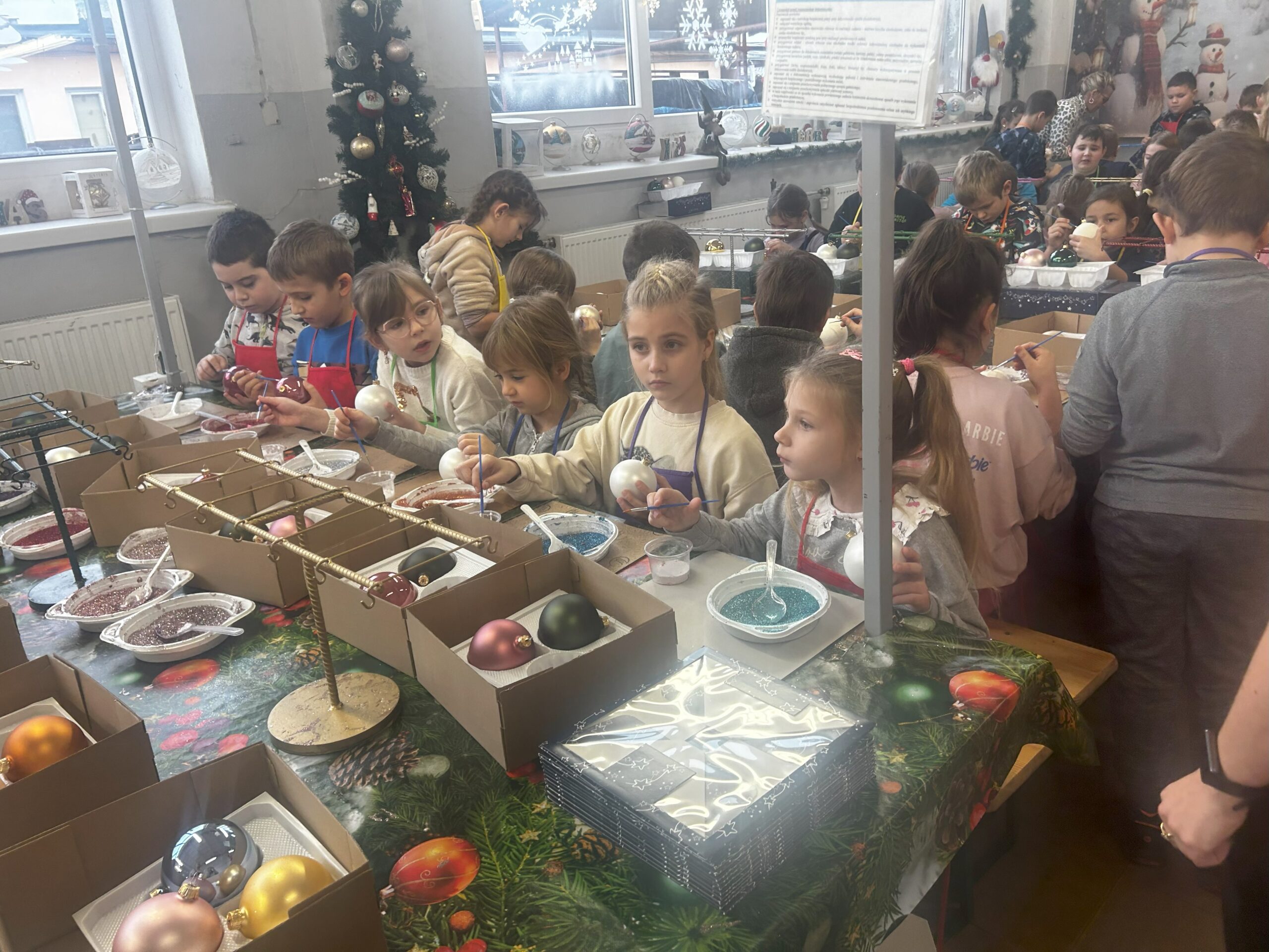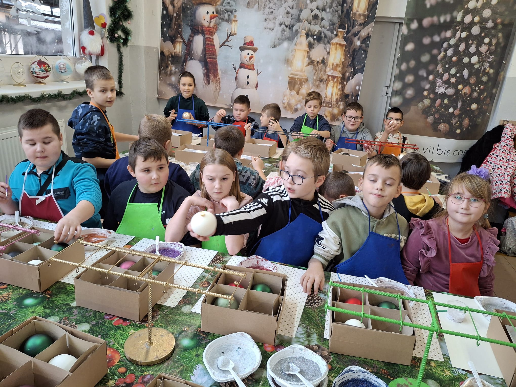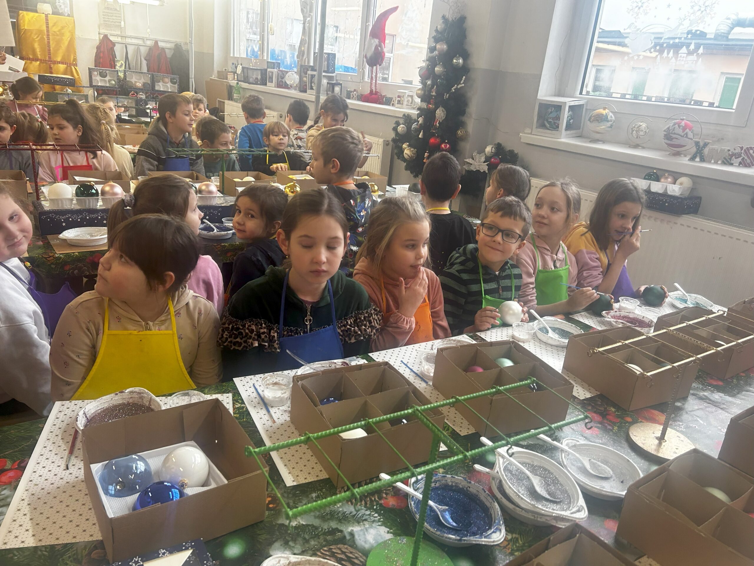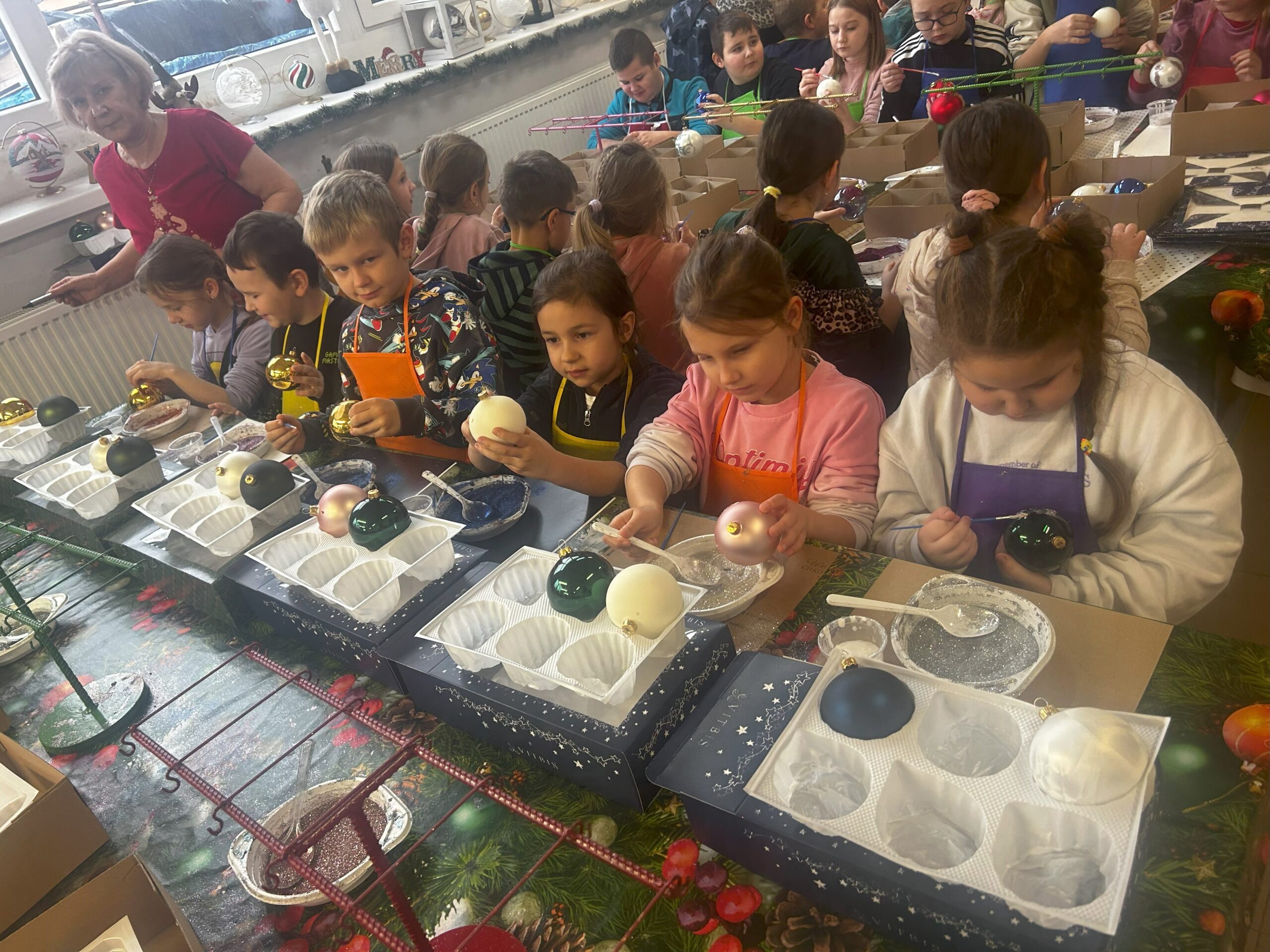 11 grudnia klasy I – IV wybrały się na wycieczkę do Złotoryi. Pierwszym punktem naszej wyprawy było zwiedzanie pięknego rynku i poznanie ciekawej historii tego urokliwego miasta. Następnie udaliśmy się do fabryki bombek Vitbis. Podczas zwiedzania zakładu mogliśmy zobaczyć każdy etap powstawania szklanych ozdób – jak z podgrzanej szklanej rurki wydmuchuje się okrągły kształt bombki, następnie proces srebrzenia oraz dekorowania przez pracowników, którzy każdą bombkę przyozdabiają pięknymi wzorami. Po wizycie w  fabryce wzięliśmy udział w warsztatach plastycznych. Uczniowie mieli okazję zamienić się w artystów, ozdabiali bombki według własnych pomysłów, a swoje prace zabrali na pamiątkę do domu. Na zakończenie każdy uczestnik otrzymał również bombkę ze swoim imieniem. Zadowoleni ze wspólnie spędzonego dnia udaliśmy się w drogę powrotną.