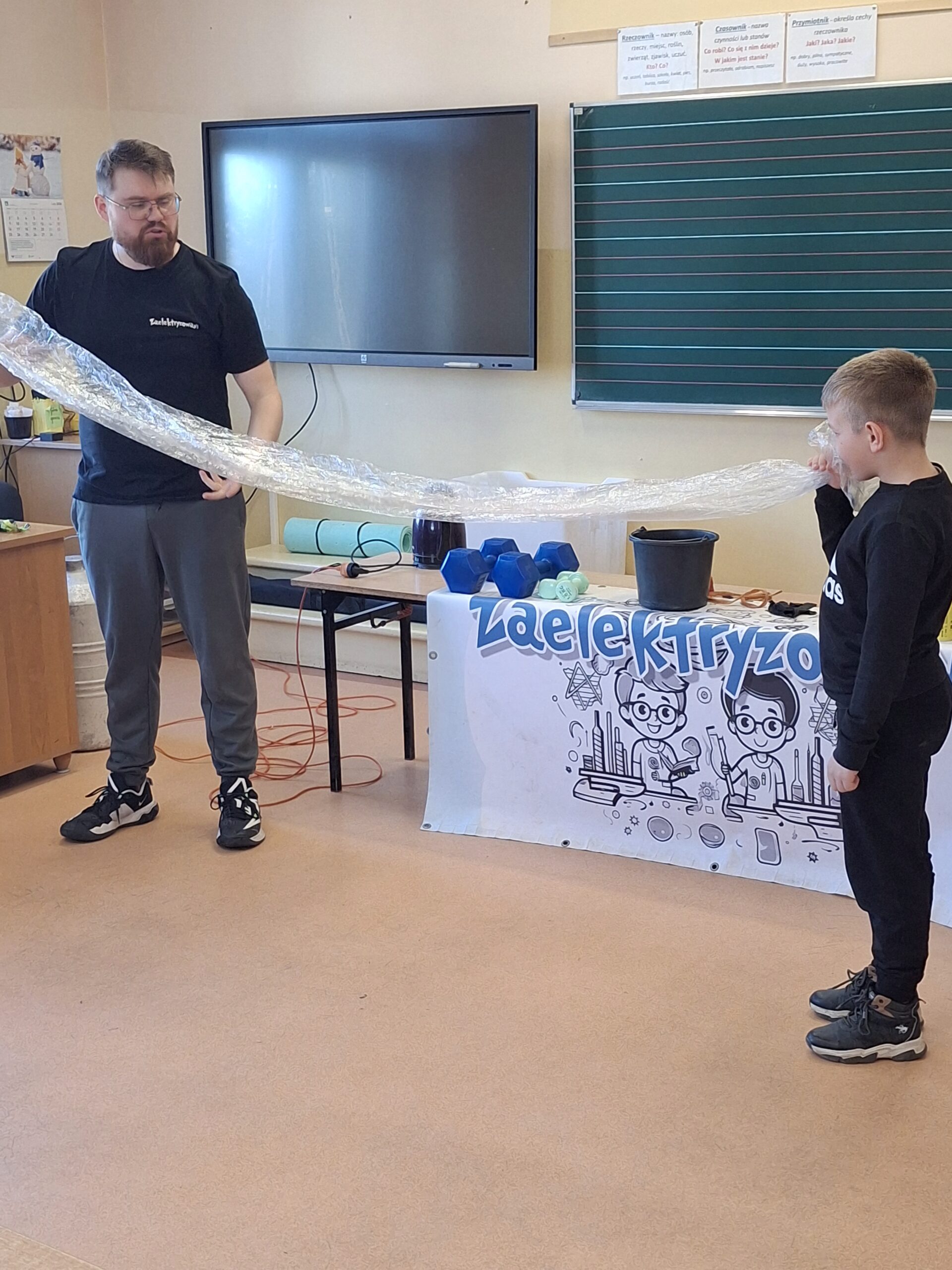 Dnia 4.03.2026 r. gościliśmy w klasach I-III grupę ,,Zaelektryzowani”, która przedstawiła nam spektakl : ,, Zaelektryzowani- Sposobem na nudę”. Tematyka obejmowała materiały z fizyki, chemii i przyrody. W ramach spektaklu dzieci mogły obejrzeć eksperymenty związane z naukami przyrodniczymi i dowiedziały się na czym polegają: