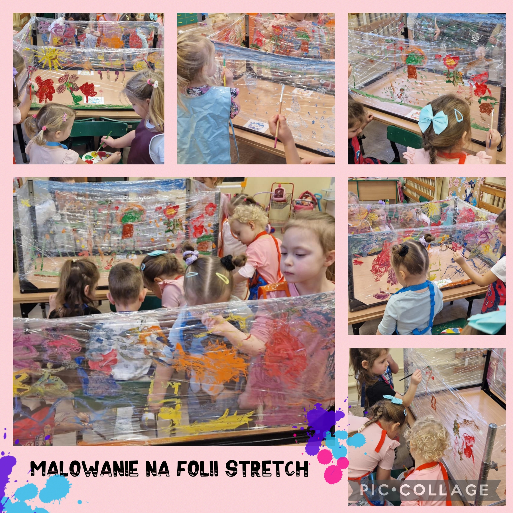 Przedszkolaki dowiedziały się także dlaczego przykryta świeczka gaśnie oraz sprawdzały, co się stanie, gdy wrzucimy rodzynki do wody gazowanej. Okazało się, że zaczęły się ruszać – unosiły się do góry i opadały na dół, jakby tańczyły. Natomiast malowanie na folii stretch okazało się świetną zabawą pobudzającą wszystkie zmysły w trakcie której, dzieci eksperymentowały z kolorami i wykazywały się niezwykłą inwencją twórczą.